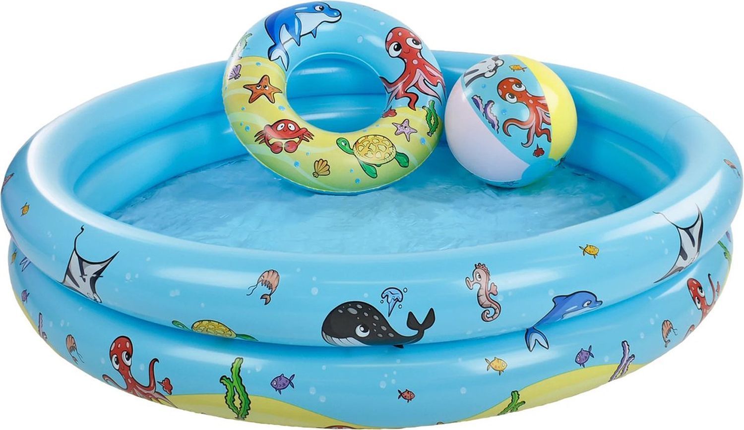 Swim Essentials Spiel Pool Set: Swimming Pool 122 cm, Beachball & Schwimmring 46