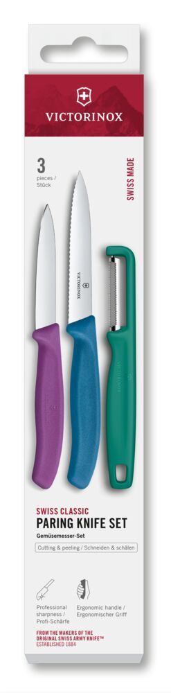 VICTORINOX Swiss Classic, Gemüsemesser mit I-Schäler, 3tlg, rn/violett/blu