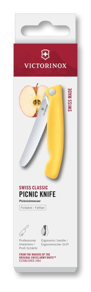 VICTORINOX Swiss Classic, Picknick Messer, 11cm, Wellen, gelb, Box