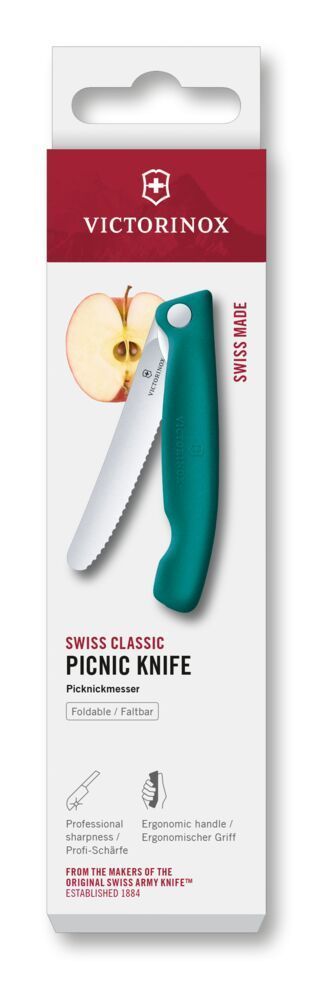 VICTORINOX Swiss Classic, Picknick Messer, 11cm, Wellen, grün, Box