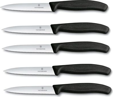 6x Swiss Classic, Gemüsemesser, 10cm, Wellen, schwarz