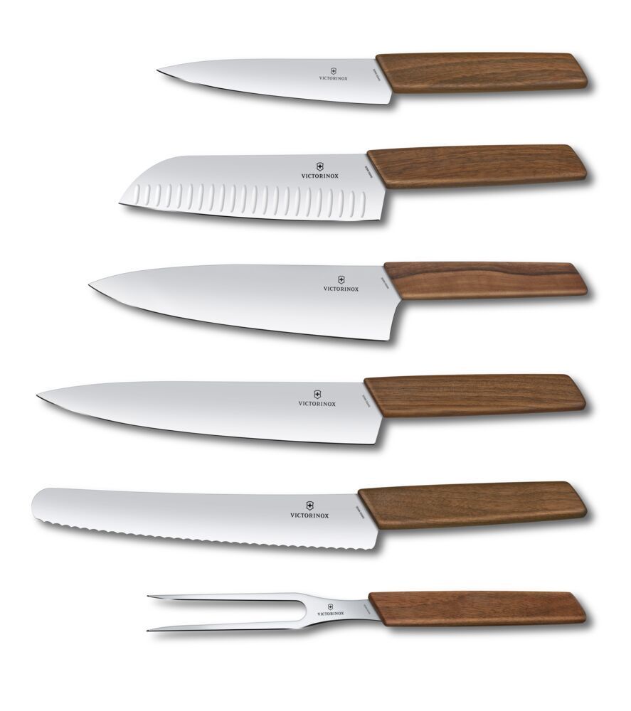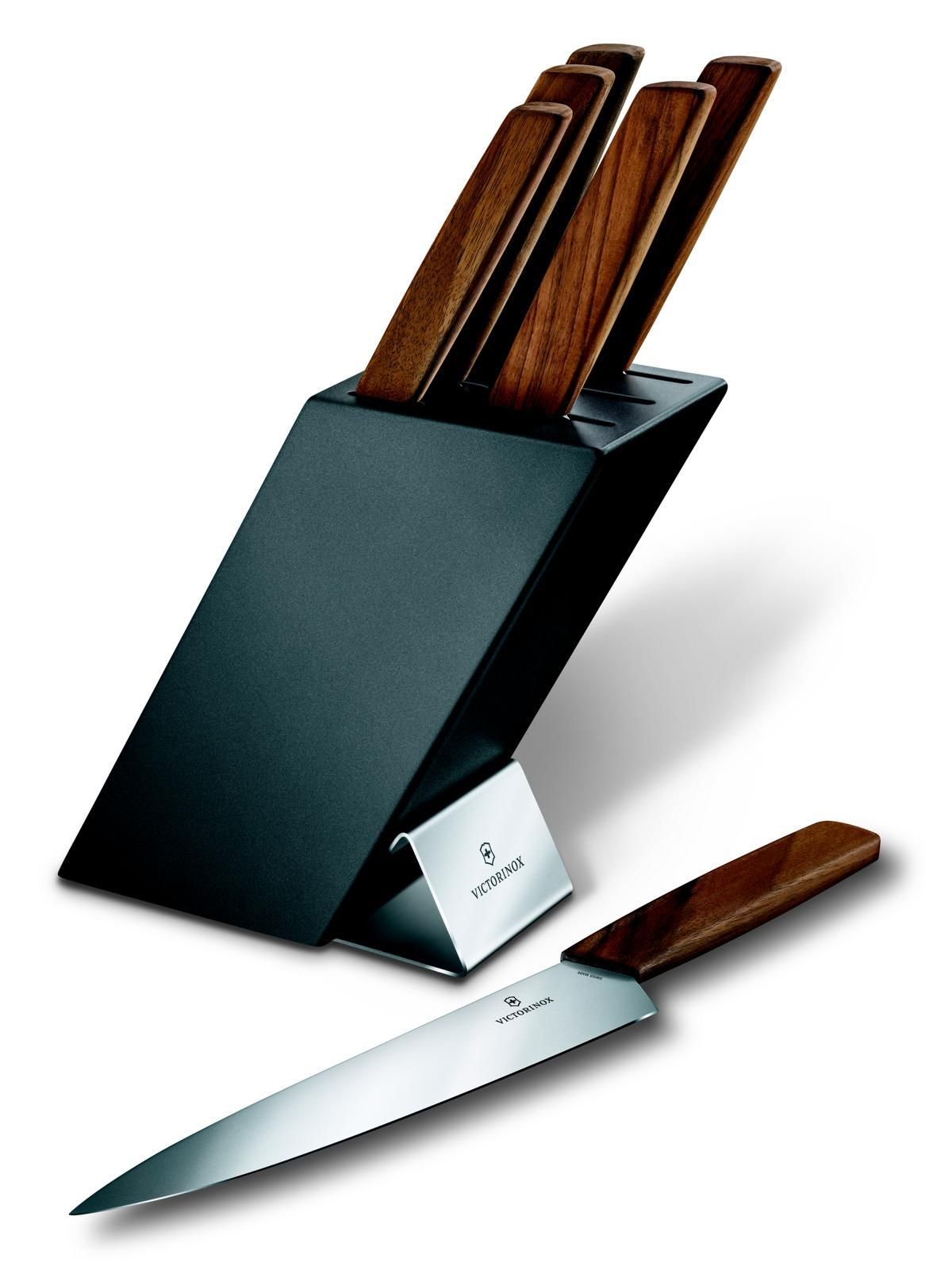 VICTORINOX Swiss Modern, Messerblock, Buchenholz anthr., 7tlg, Nussbaum