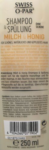 Swiss O•Par Shampoo & Spülung - Milch&Honig - Elastizität&Glanz - 250 ml
