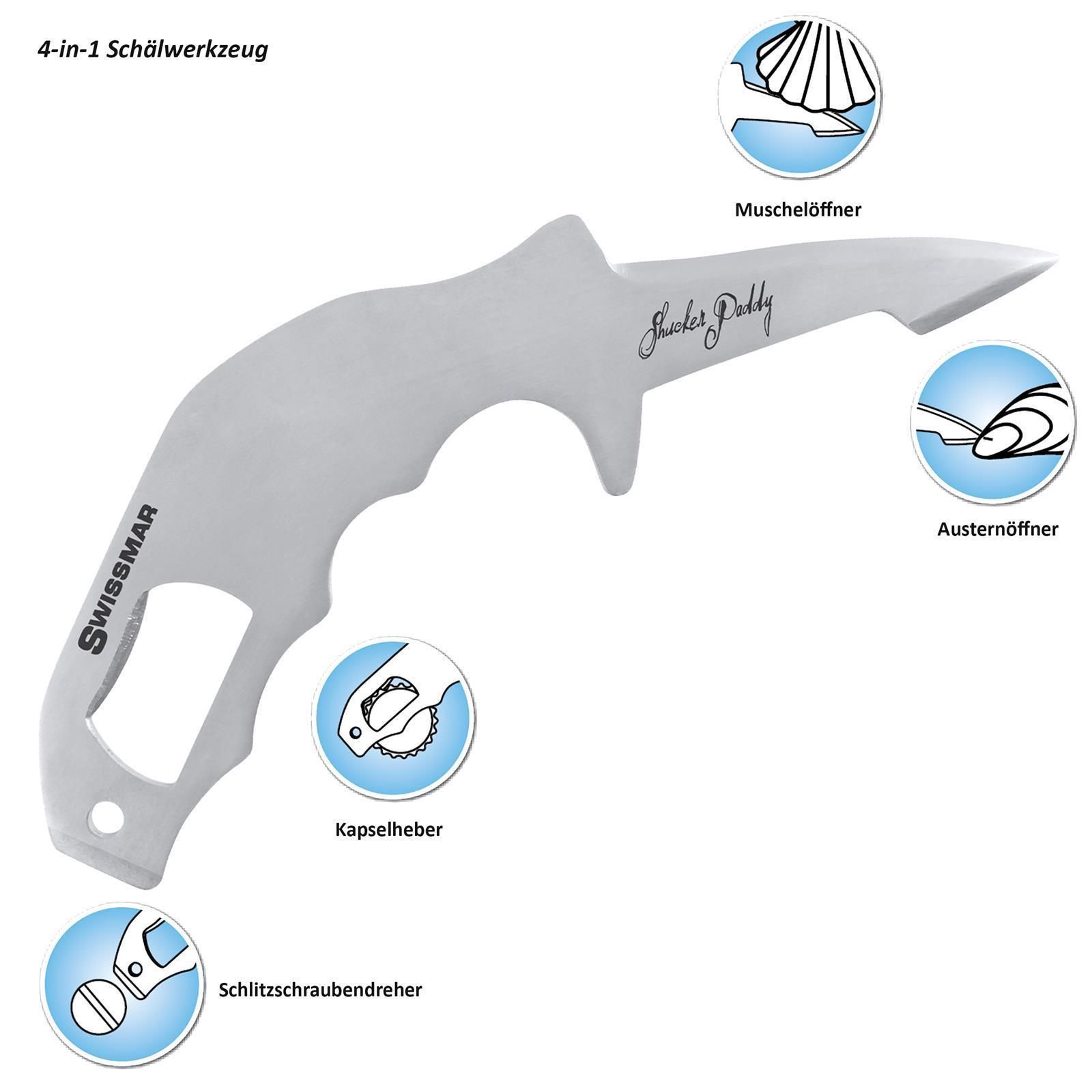 Swissmar Edelstahl Mehrzweck-Messer 4-in-1 für Austern Muscheln & Flaschenöffner