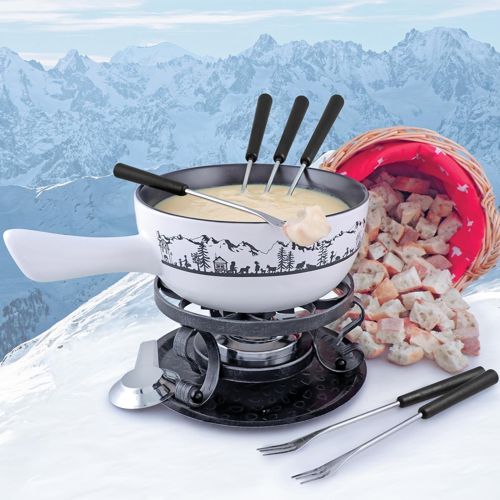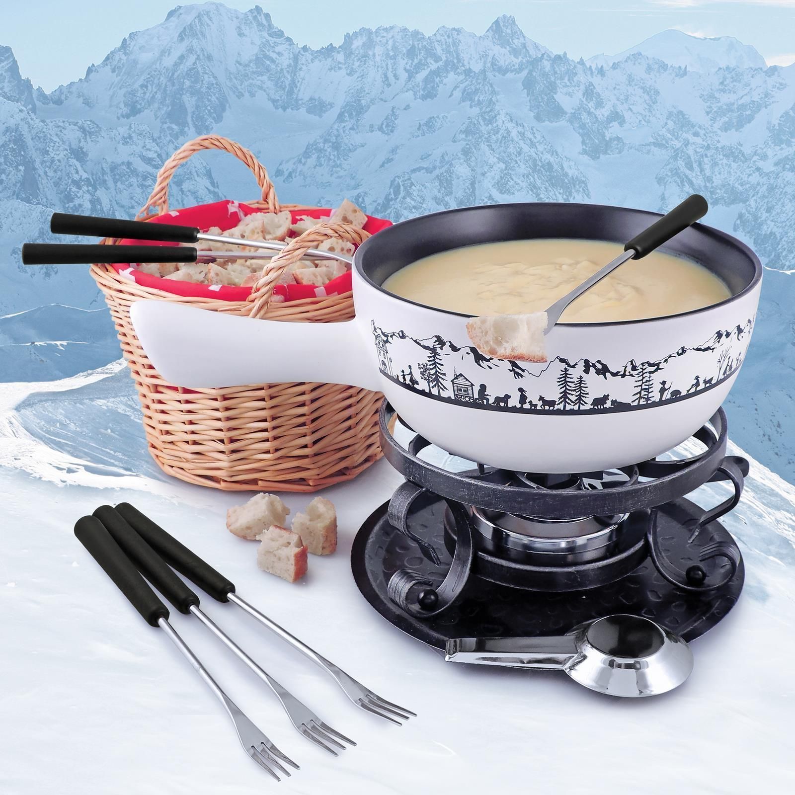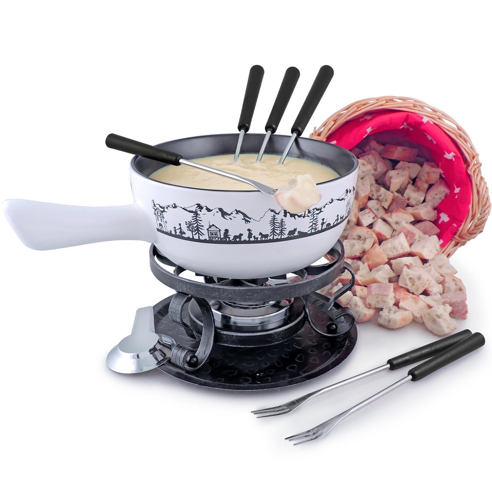 Swissmar Käsefondue Set 9-tlg. Keramik weiss Fondue Topf Ø 23 cm für 6 Personen