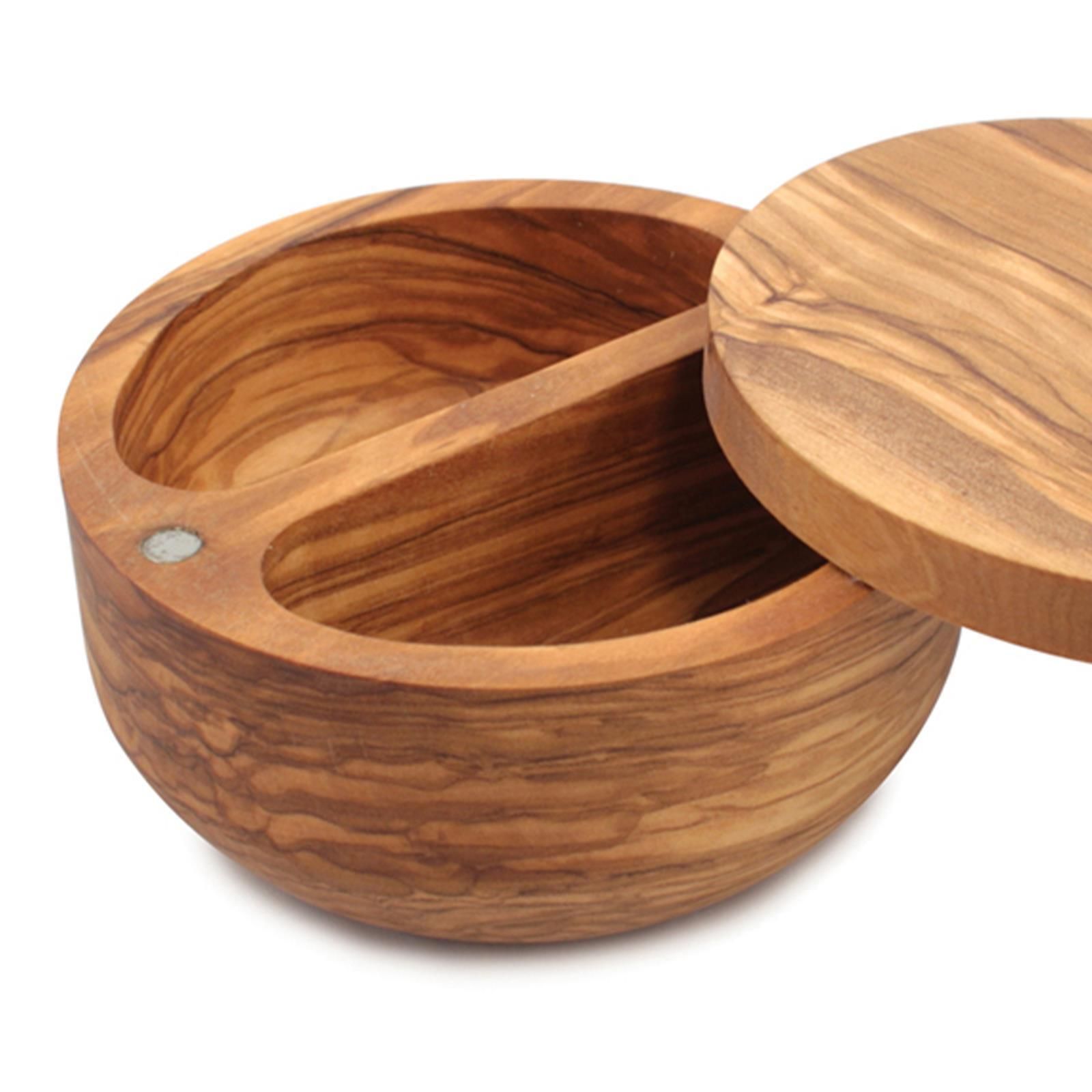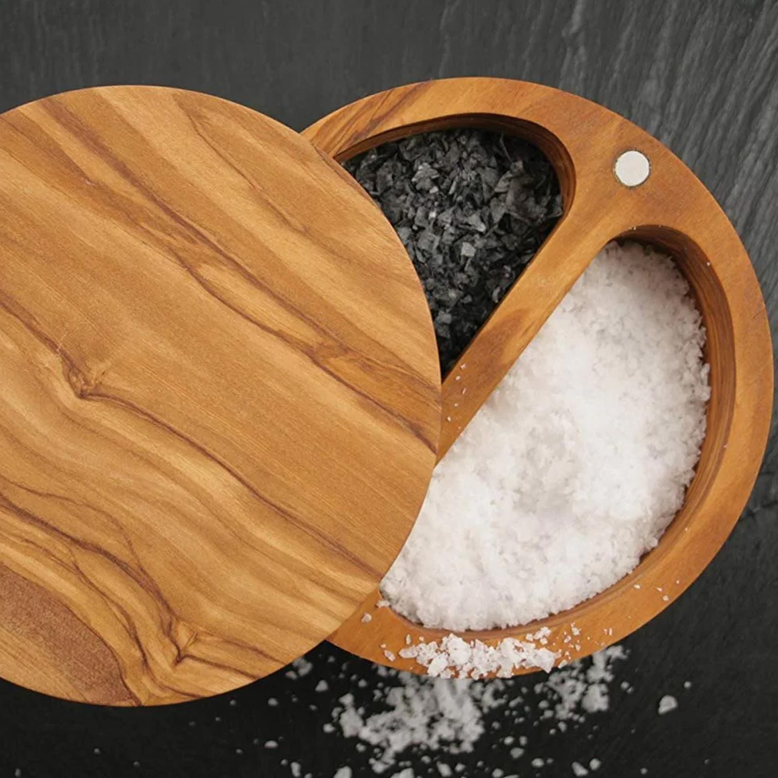 Swissmar Salz-Pfeffer Topf Olivenholz Behälter 13 cm drehbarer Deckel magnetisch