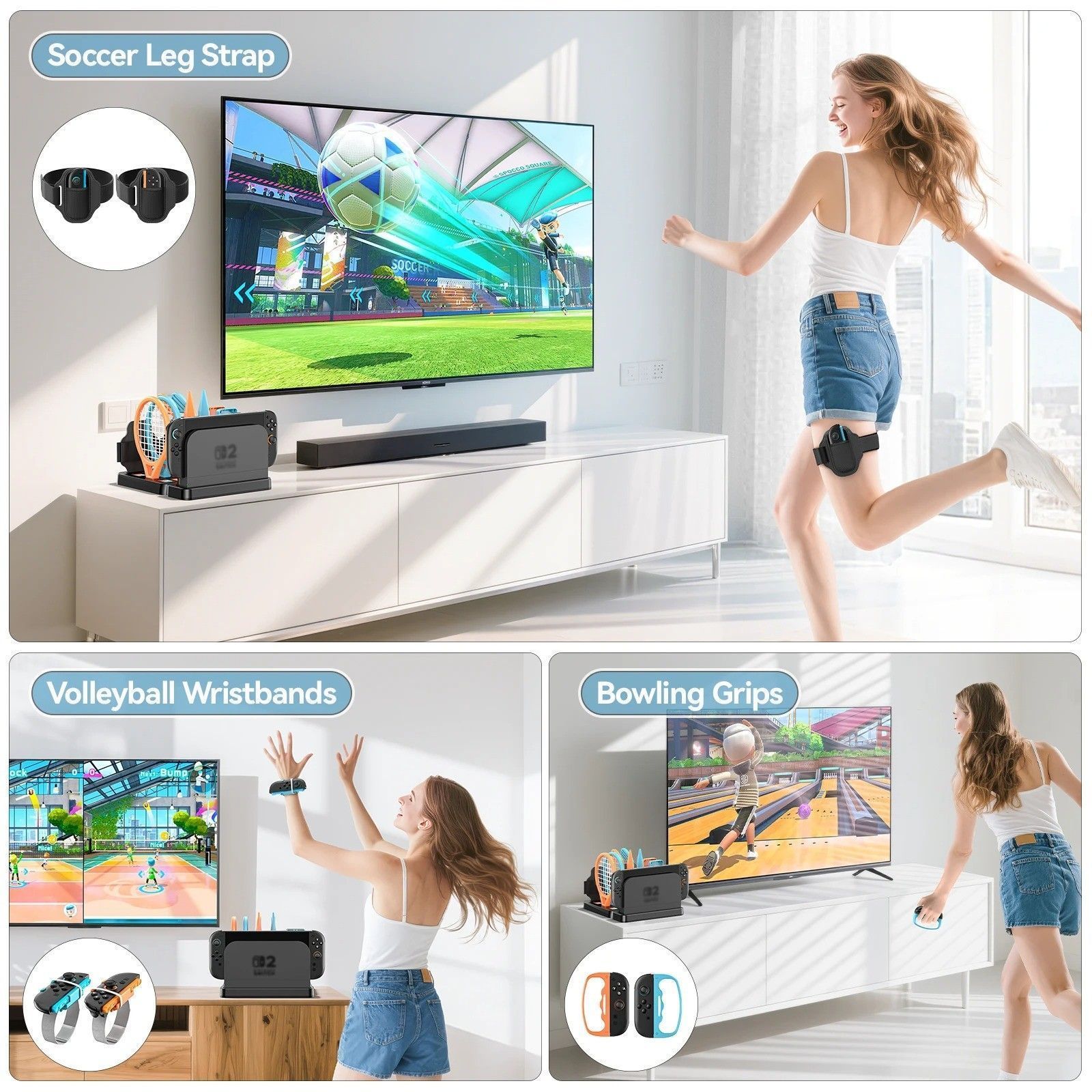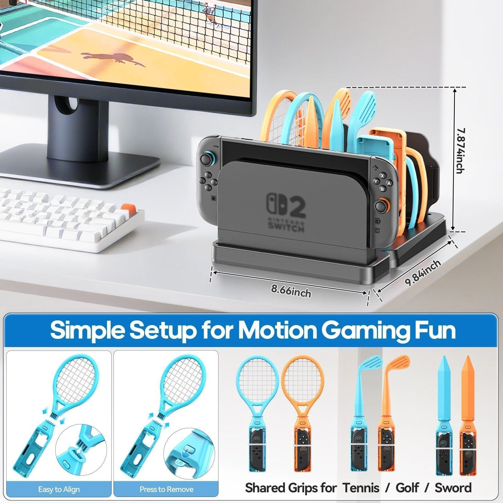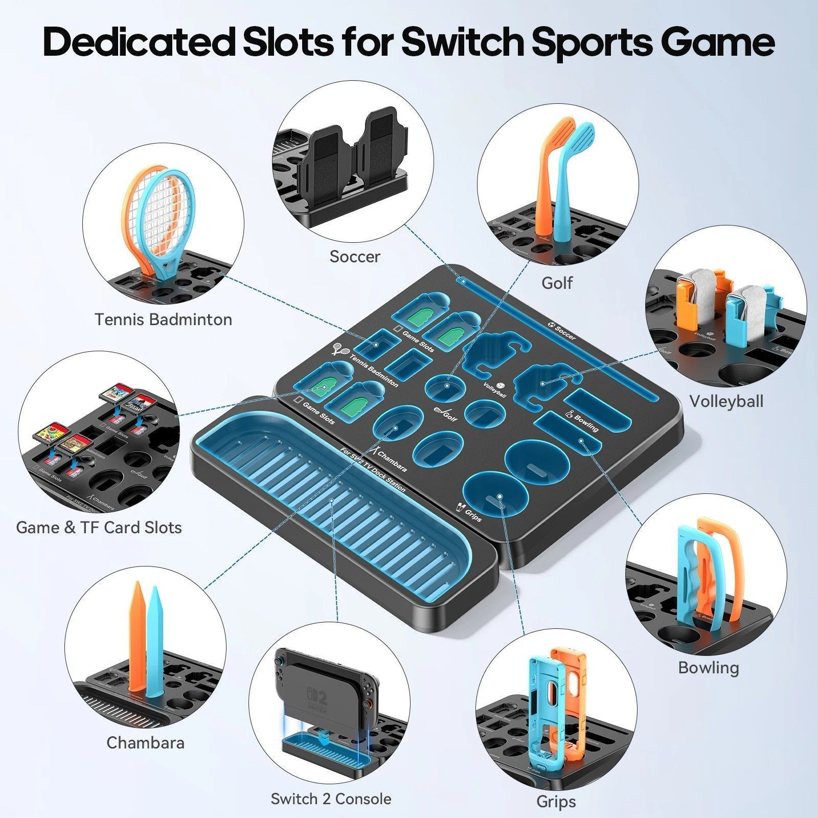 Switch 2 Sports Accessories Bundle with Organizer Storage Stand for Sports Games