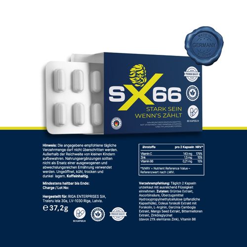 SX66 Kapseln - innovativer Superfood Komplex für Männer mit Arginin, Forskolin - 60