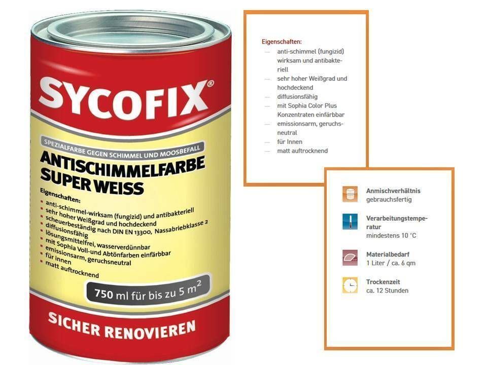 Sycofix Anti Schimmel Farbe 750ml Super Weiß