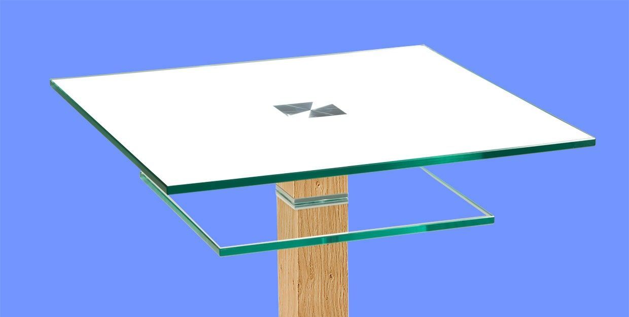 SYD-BH Couchtisch Glasplatte mit/ ohne Ablage. Stollen Echtholz oder Lack ab Werk