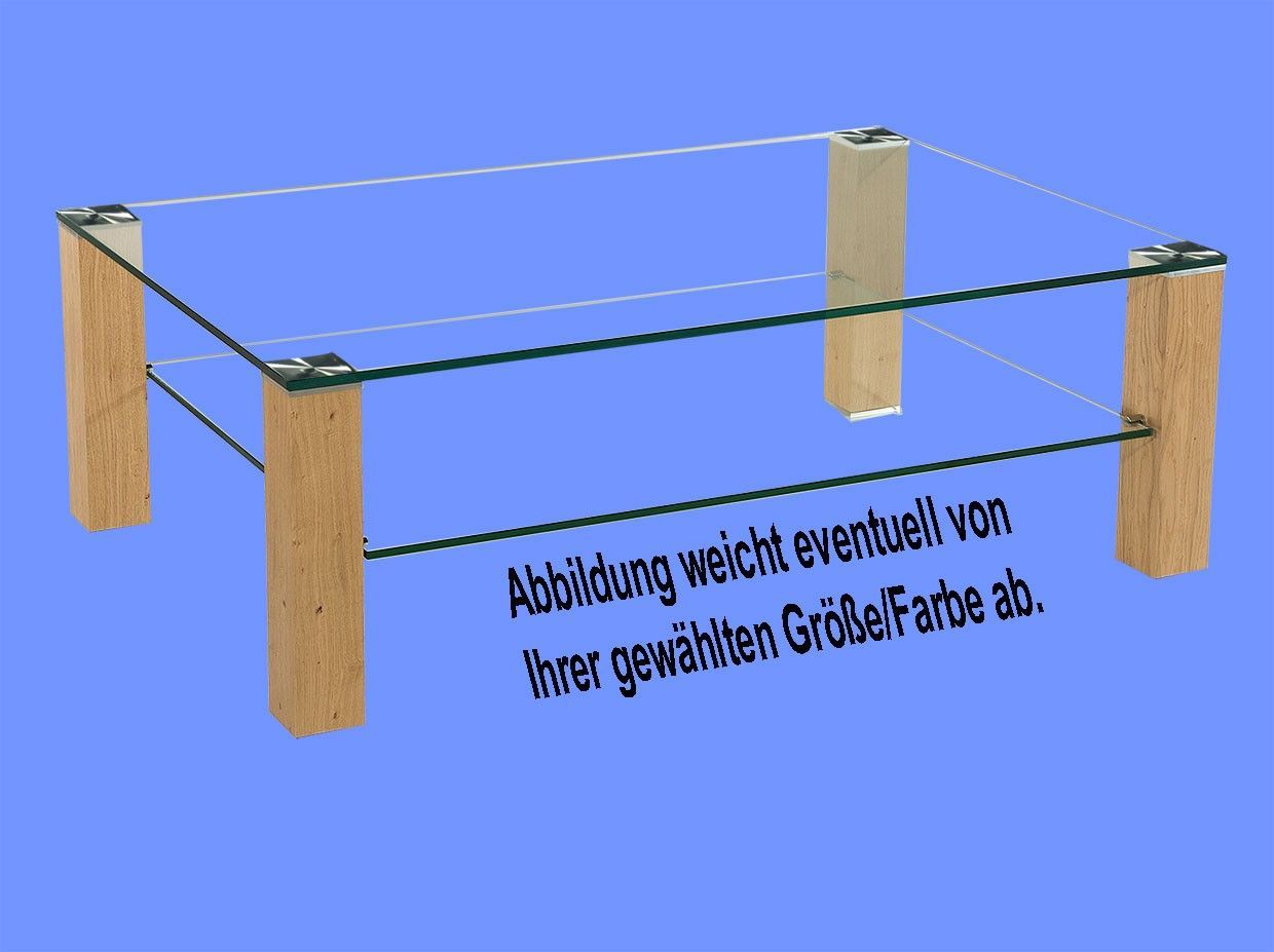 SYD-CK2H Couchtisch Klarglasplatte Rollen mit/ ohne Ablage Stollen Echtholz oder Lack
