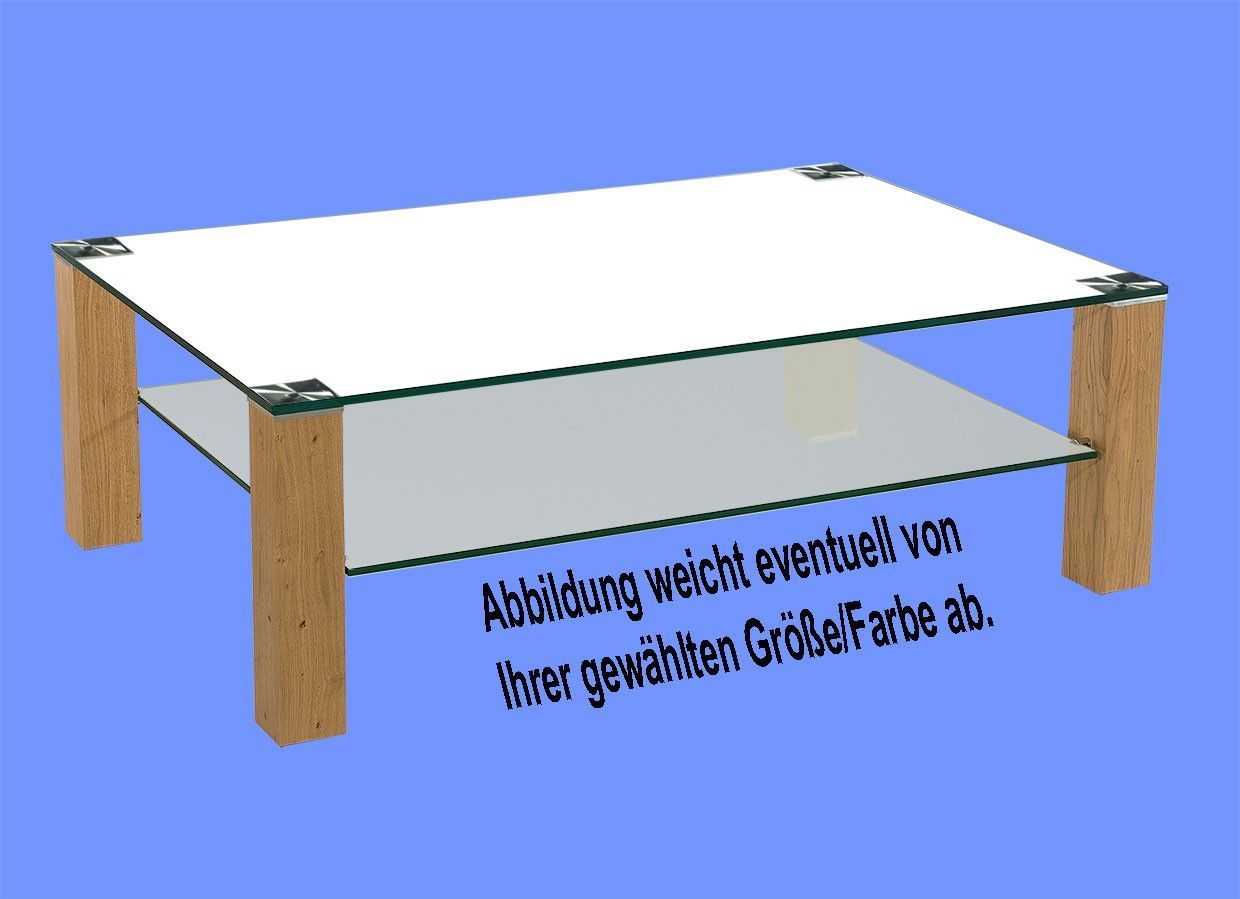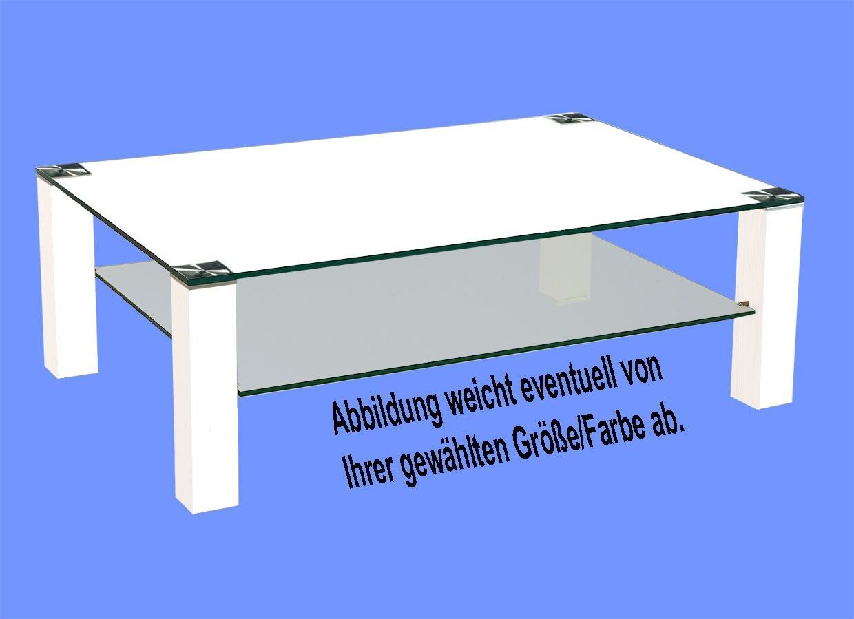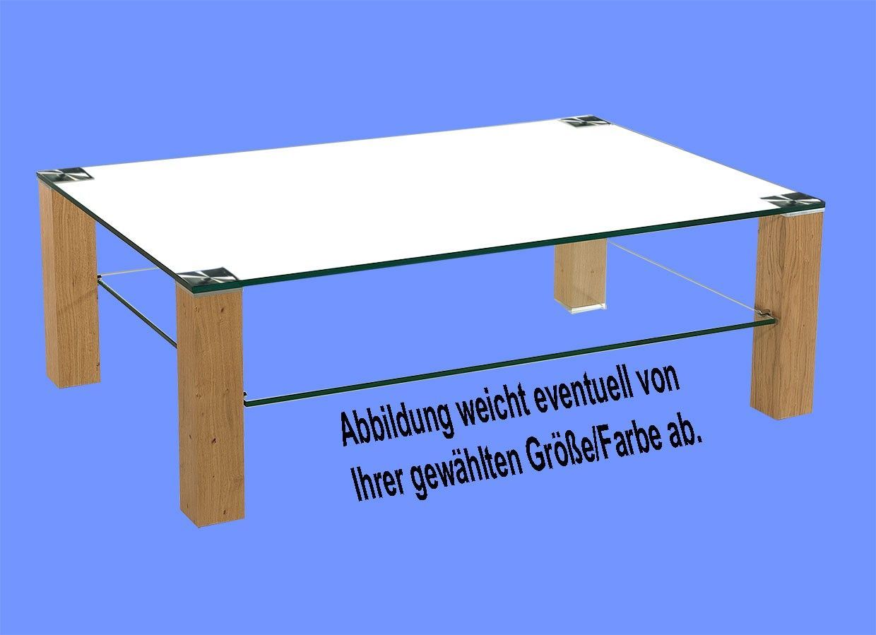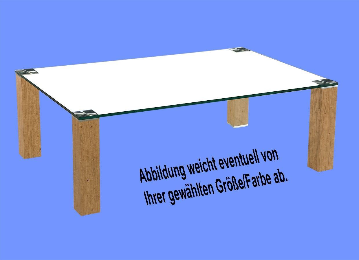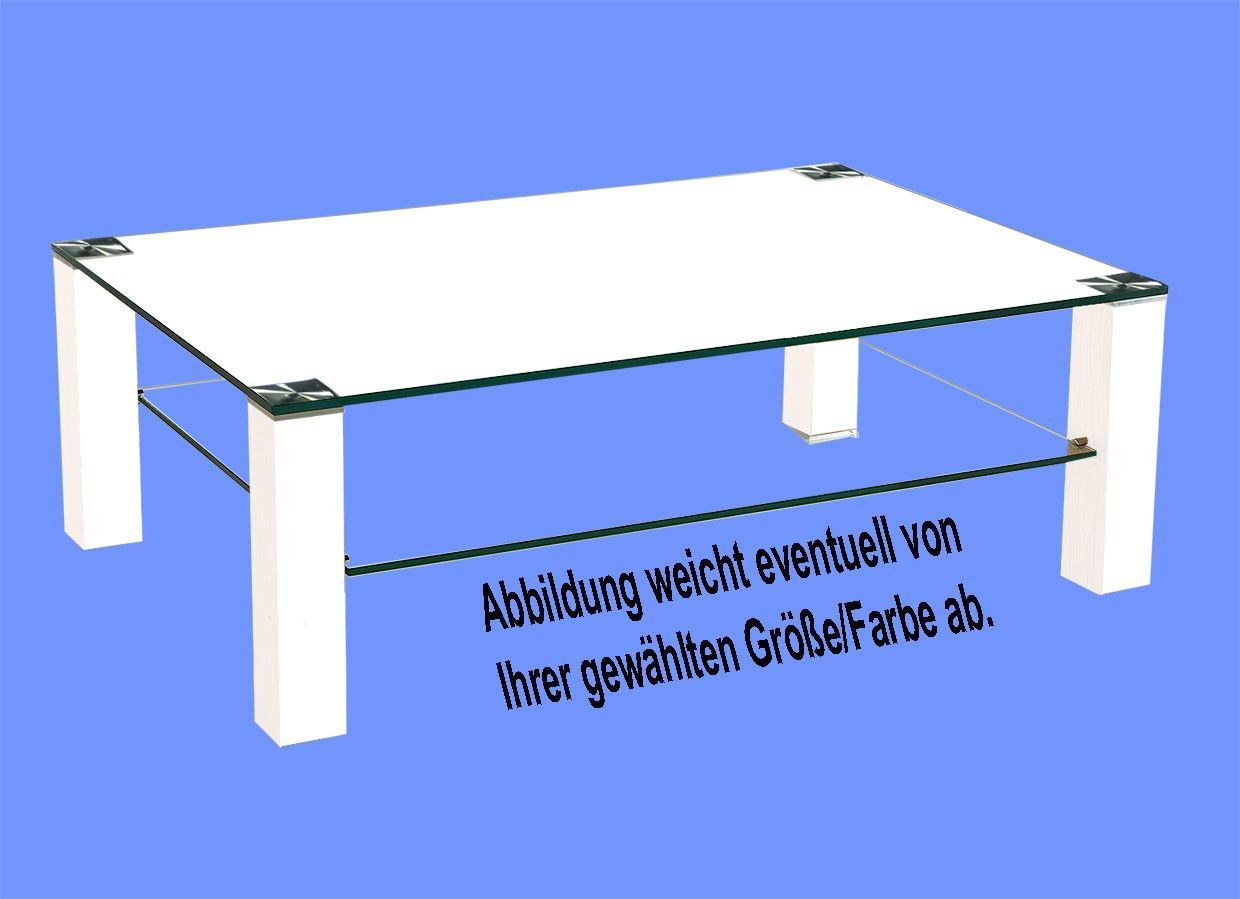 SYD-CW2H Couchtisch Weißglasplatte Rollen mit/ ohne Ablage Stollen Echtholz oder Lack