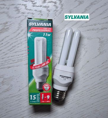 • Sylvania Energiesparlampe Röhre EL 11W E27 600lm warmweiß white Mini Lynx 827