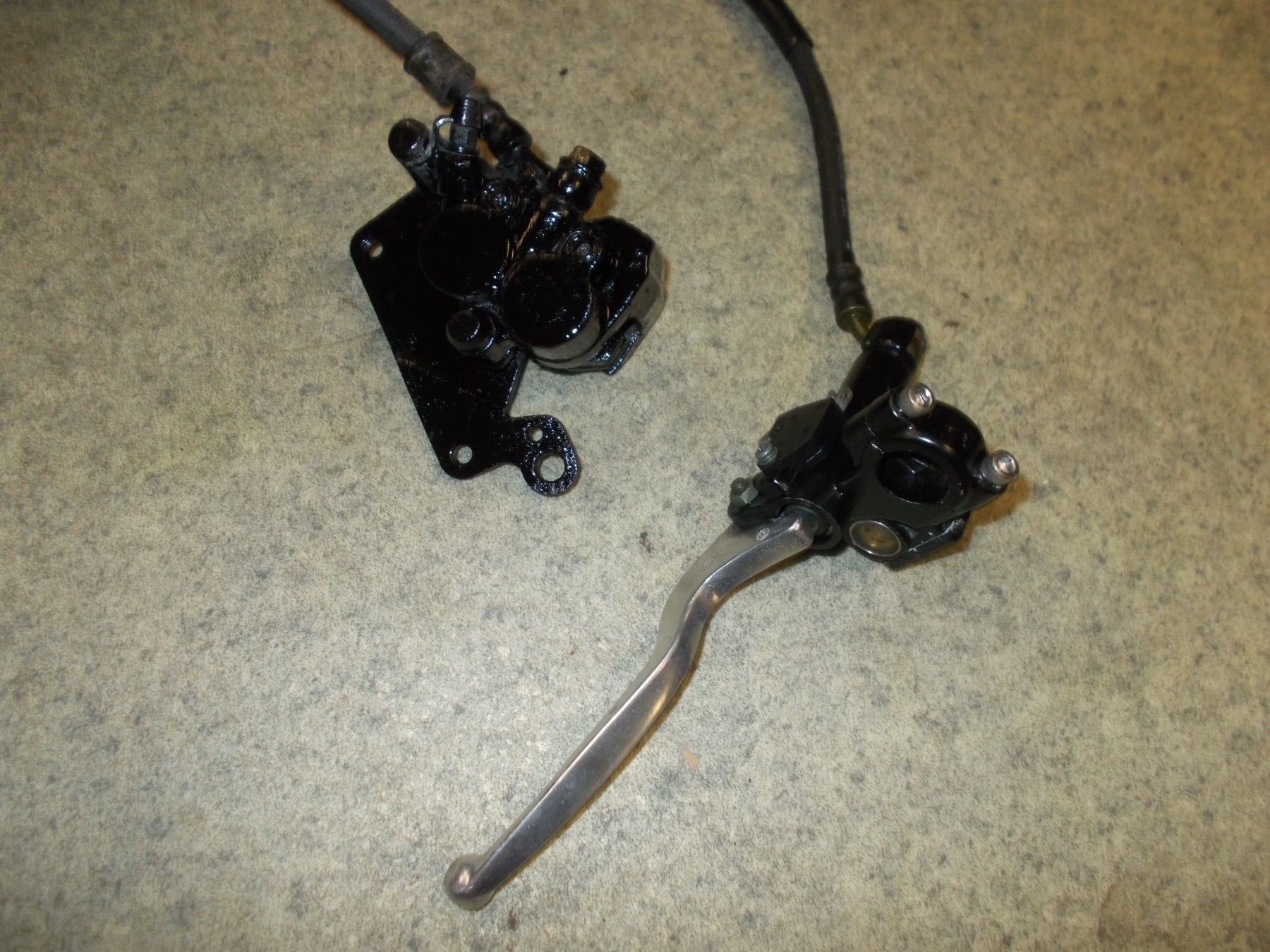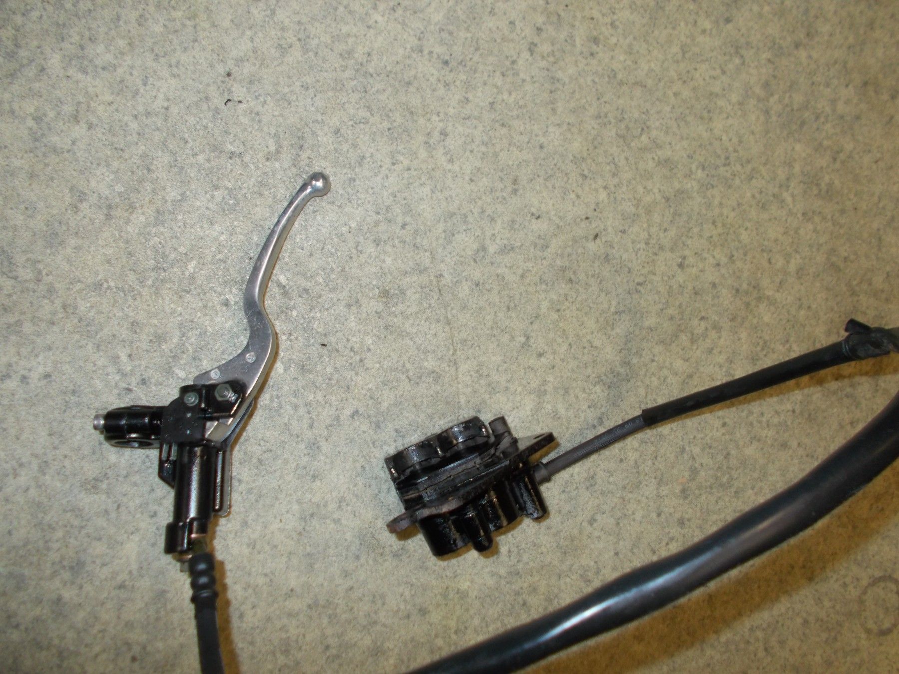 Inbegriffen sind die Bremszange incl. Belägen, Bremsleitung, Bremspumpe incl. Bremshebel und Bremslichtschalter.