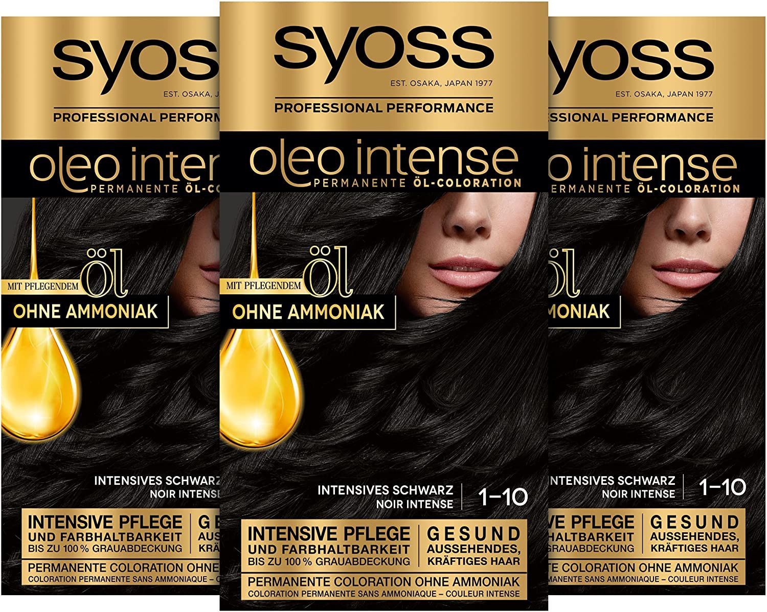 Schwarzkopf & Henkel Syoss Oleo Intense Permanent 1-10 Schwarz ohne Amoniak 3er-Pack (3x115ml)