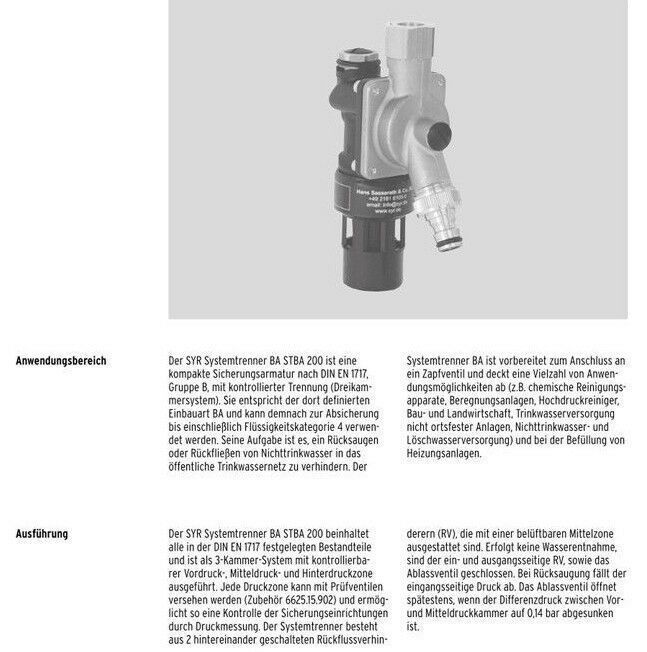 Syr Systemtrenner STBA 200 Auslaufventil DN15 3/4" Füllarmatur Heizung