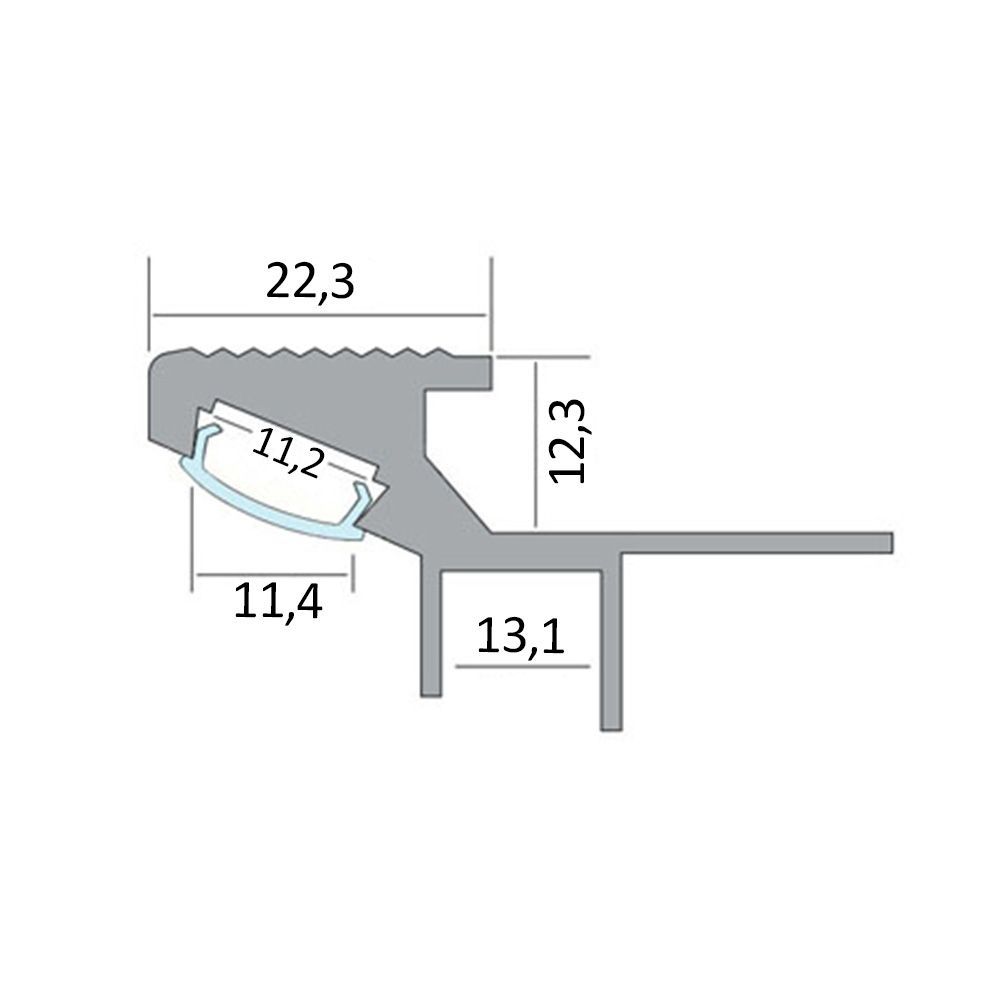 T-40 20° LED Alu Fliesenprofil Treppenprofil Stufen 12mm schwarz