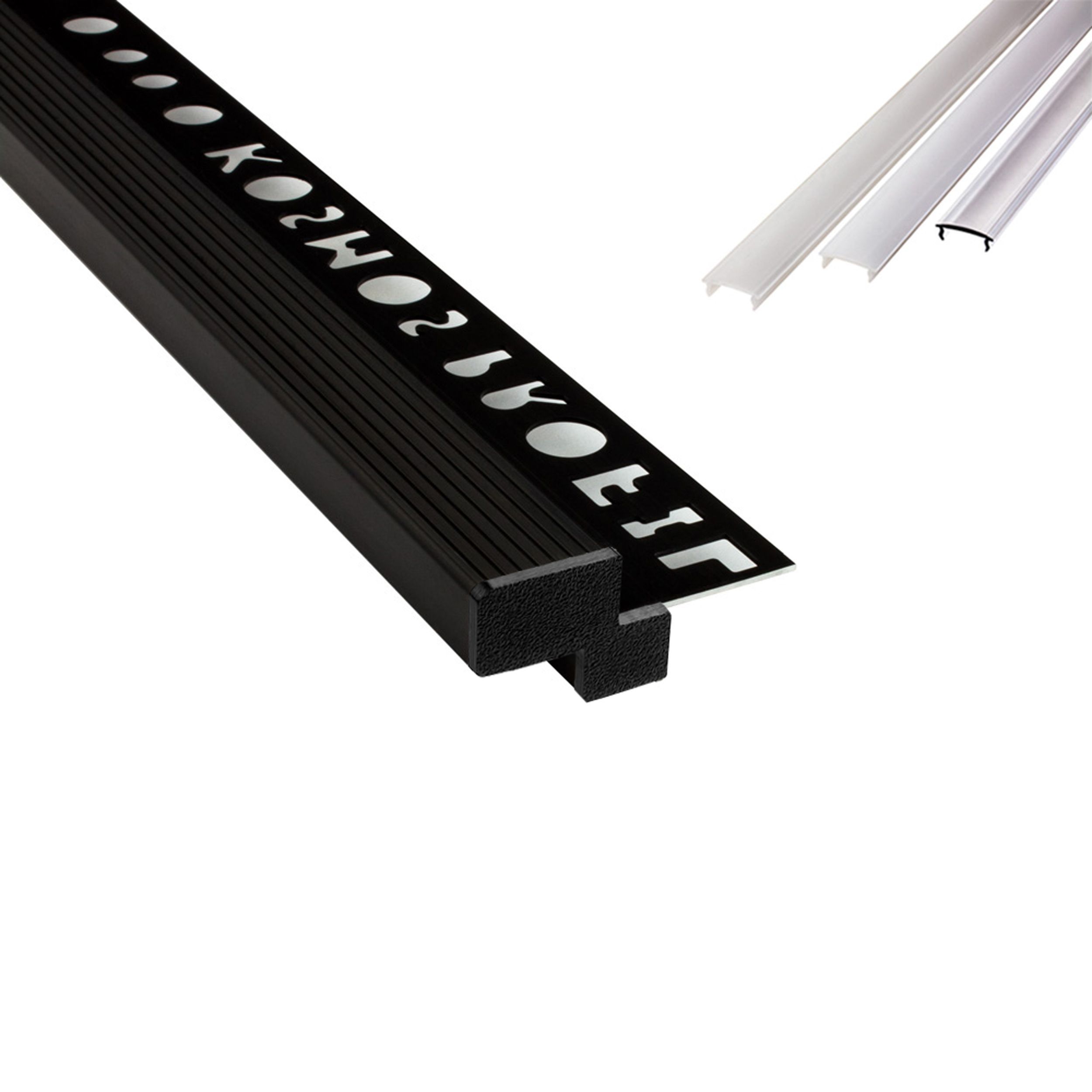 T-40 LED Alu Fliesenprofil Treppenprofil Stufen 10mm schwarz