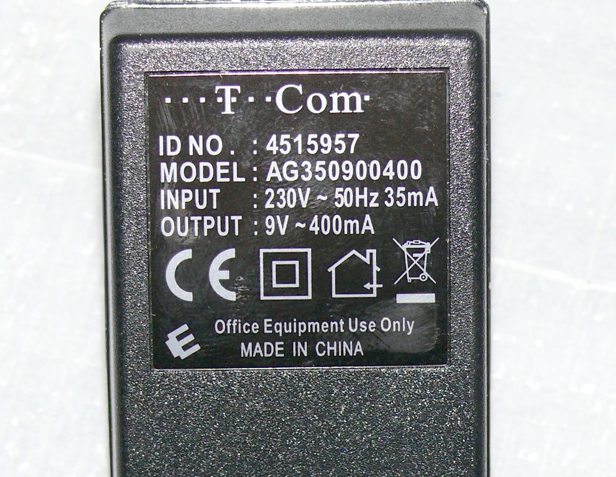 T-Com T-COM Sinus Strom Adapter Trafo 9V 400mA Ladegerät Netz teil stecker 3,3-1.3 mm