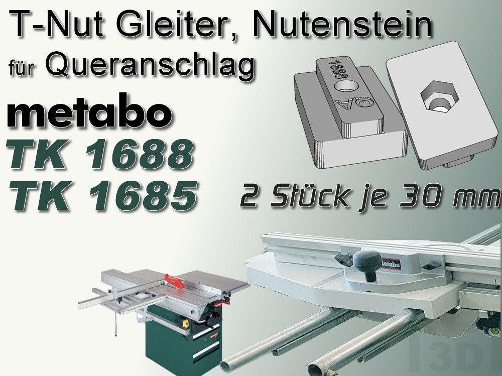 T-Nut Stein, Gleiter, Nutenstein, metabo Queranschlag TK 1688 + 1685 kompatibel