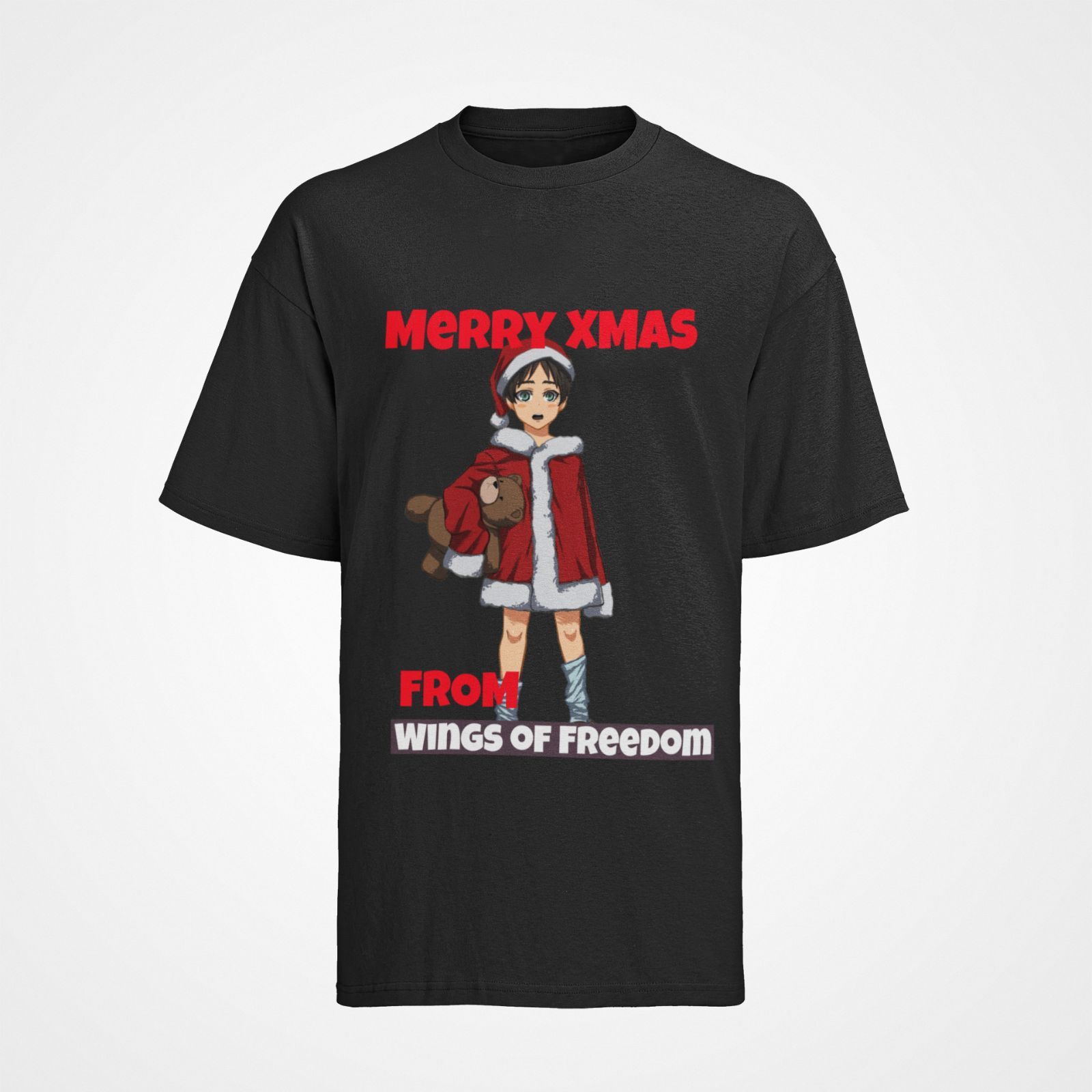 Feiern Sie die Freude der Weihnachtszeit und die Faszination von Attack on Titan mit unserem exklusiven T-Shirt aus Bio Baumwolle. Das Merry Xmas Design mit Eren Jäger verleiht Ihrem Look eine einzigartige Mischung aus Festlichkeit und Anime-Begeisterung. Hauptmerkmale: Nachhaltige Bio Baumwolle: Un