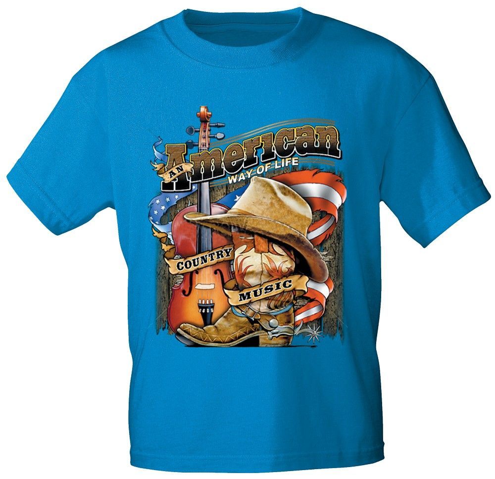 T-Shirt mit Print - American Way of Life Country Music - 10249 türkis Gr. M