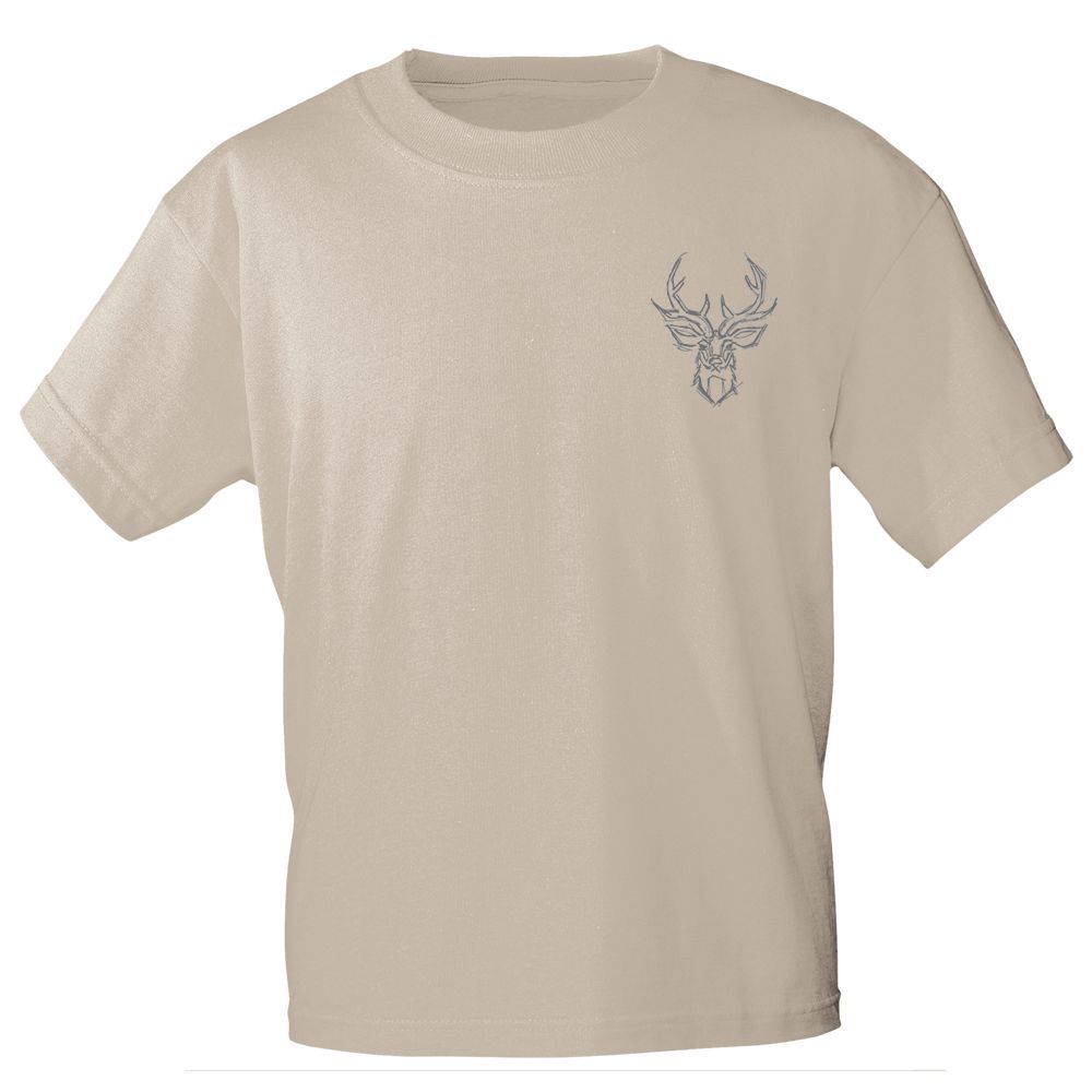 T-Shirt mit Print Hirschkopf mit Geweih - 11911 sandfarben Gr. S