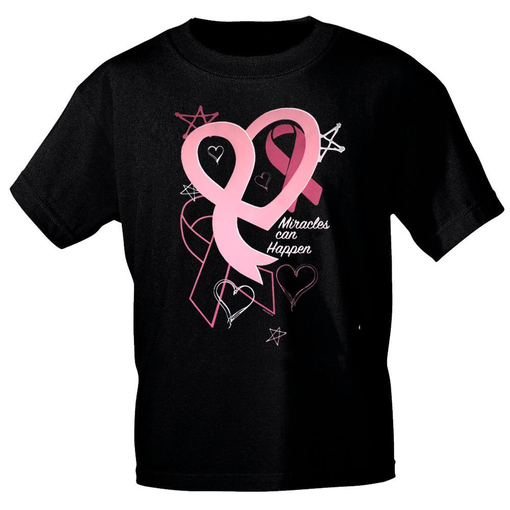 T-Shirt mit Print | Miracles can Happen | Schleife Rosa | 10960 Schwarz | Gr. M