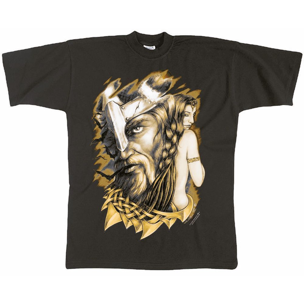 T-Shirt mit Print - Wikinger Frau Zopf Beute - 92000 schwarz - Gr. L