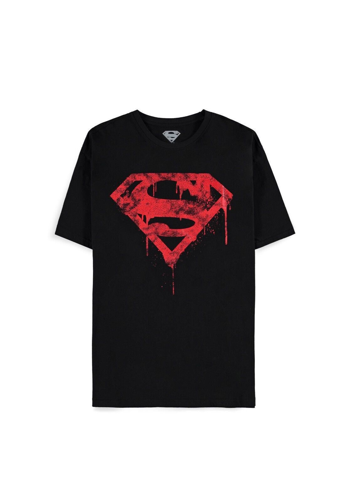 Produktinformationen Graffiti S Blut Logo T-Shirt Original lizenziertes DC Superman - Logo T-Shirt großflächiger Superman Frontdruck gerader Schnitt Rundhalsausschnitt Farbe schwarz Material: 100 % Baumwolle Pflegehinweis: Waschbar bei 30°C. Lieferzeit 1 - 3 Tage* Material: Baumwolle FÜR COOL BEFIND