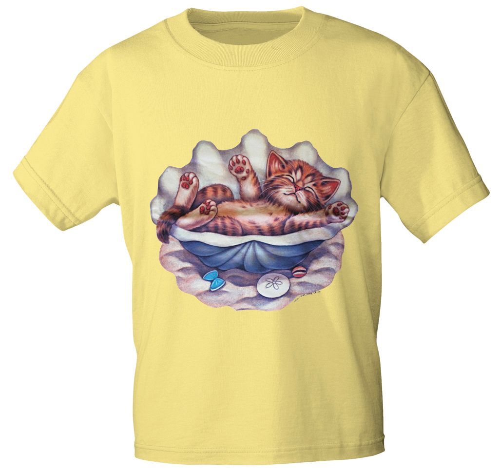 T-Shirt Print Katze in Muschel KA167 Gr. S-3XL