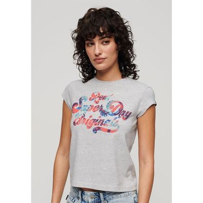 T-Shirt Superdry Slim Fit mit floralem Schriftzug