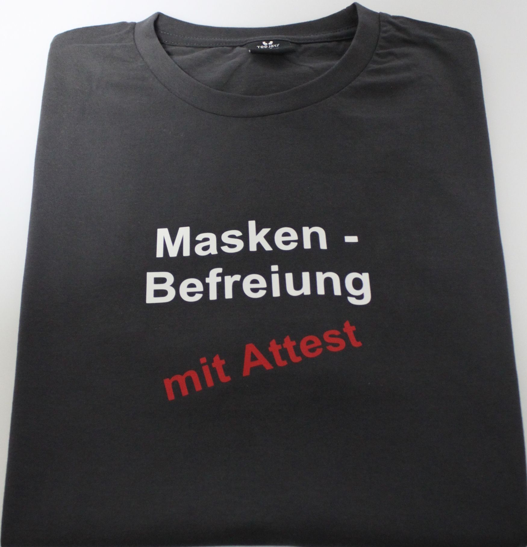 T-Shirt Unisex mit Print - Maskenbefreiung mit Attest - Vorder- Rückendruck - 12641