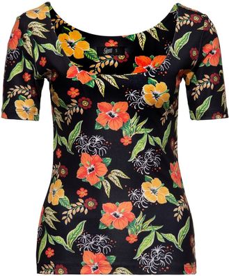 • Queen Kerosin Damen Queens Bay Print T-Shirt Schwarz