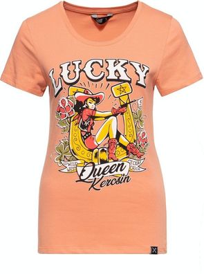 • Queen Kerosin Damen Lucky Print T-Shirt Orange