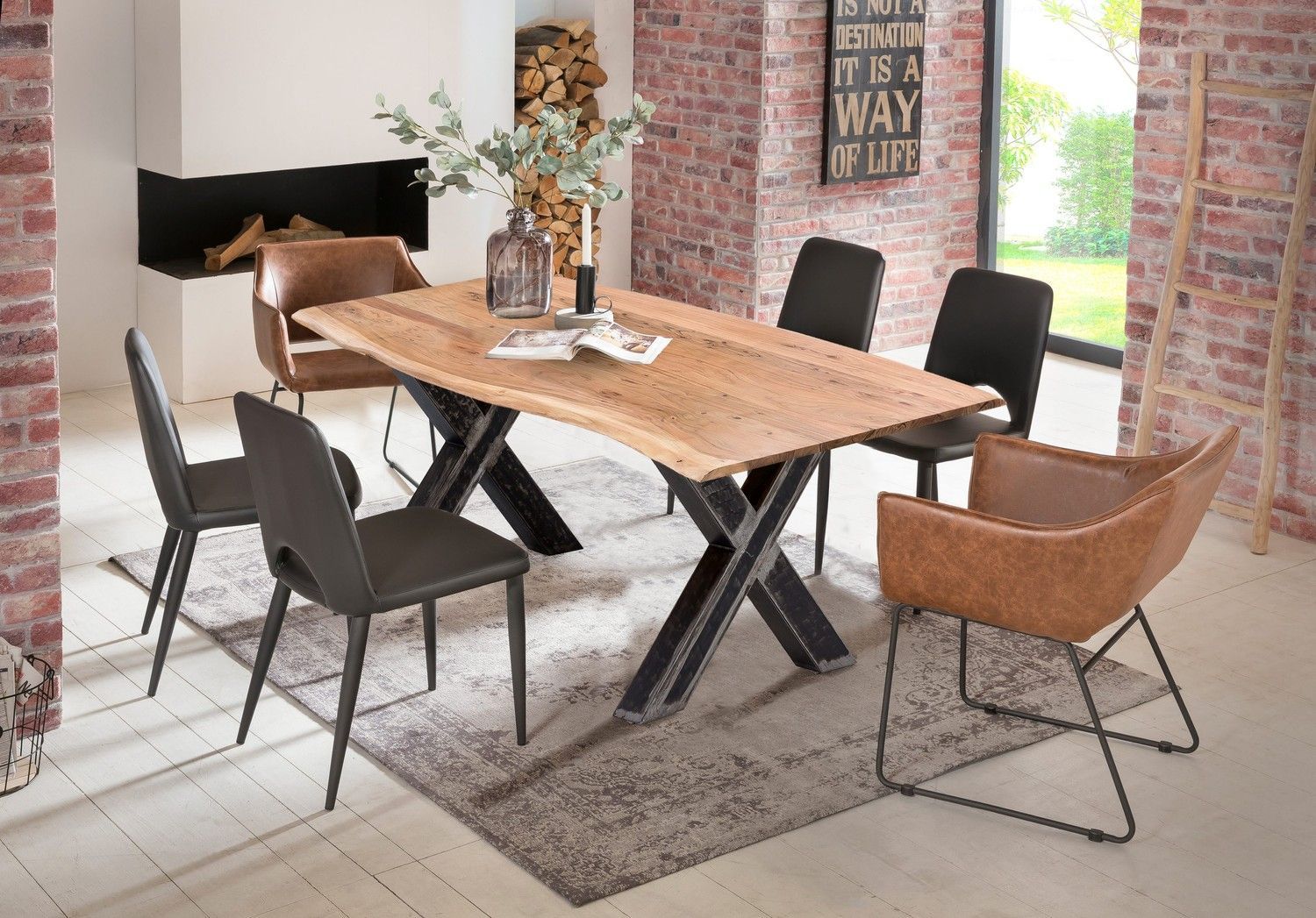 TABLES&Co Tisch 200x100 Akazie Natur Metall Schwarz
