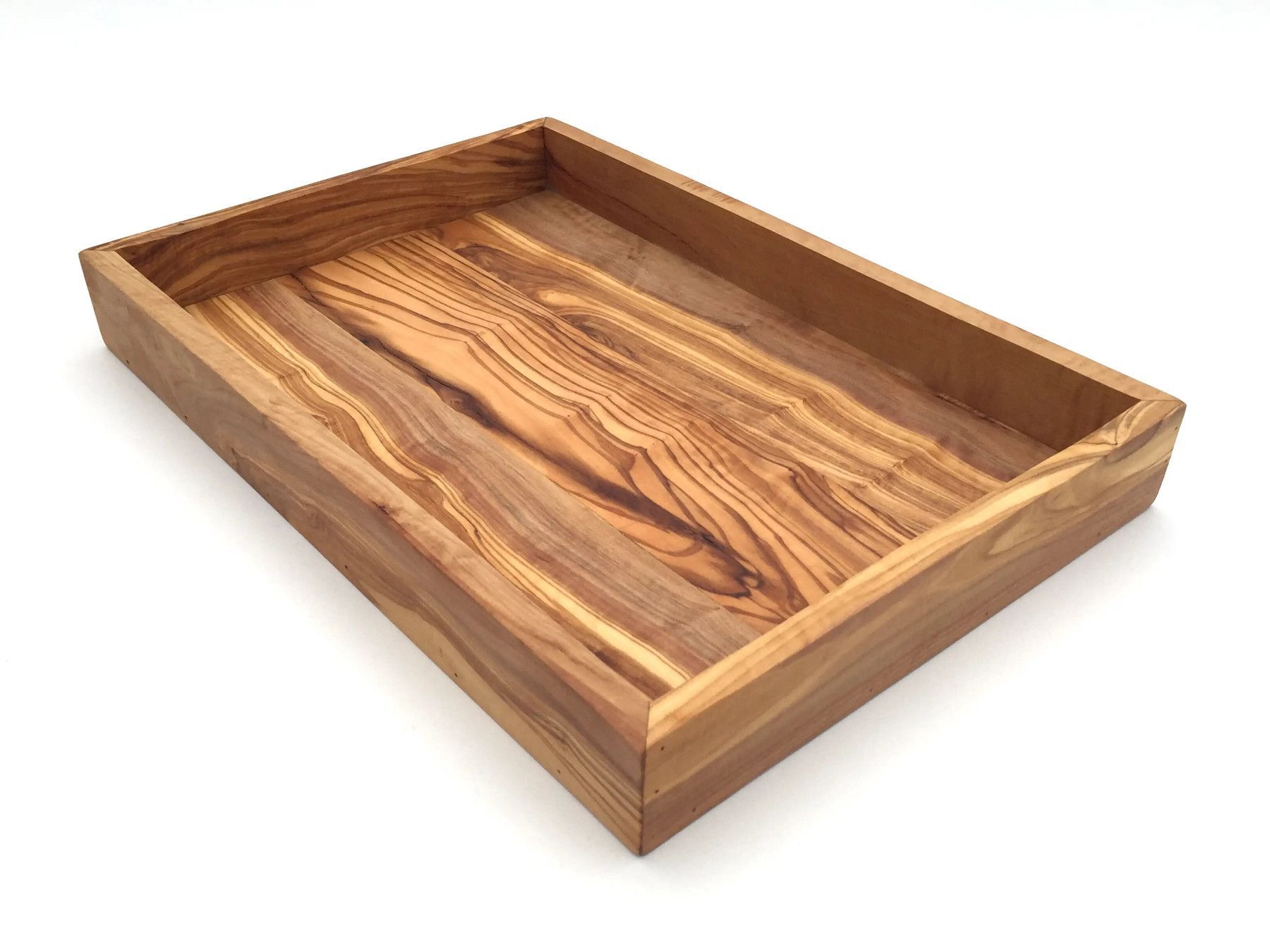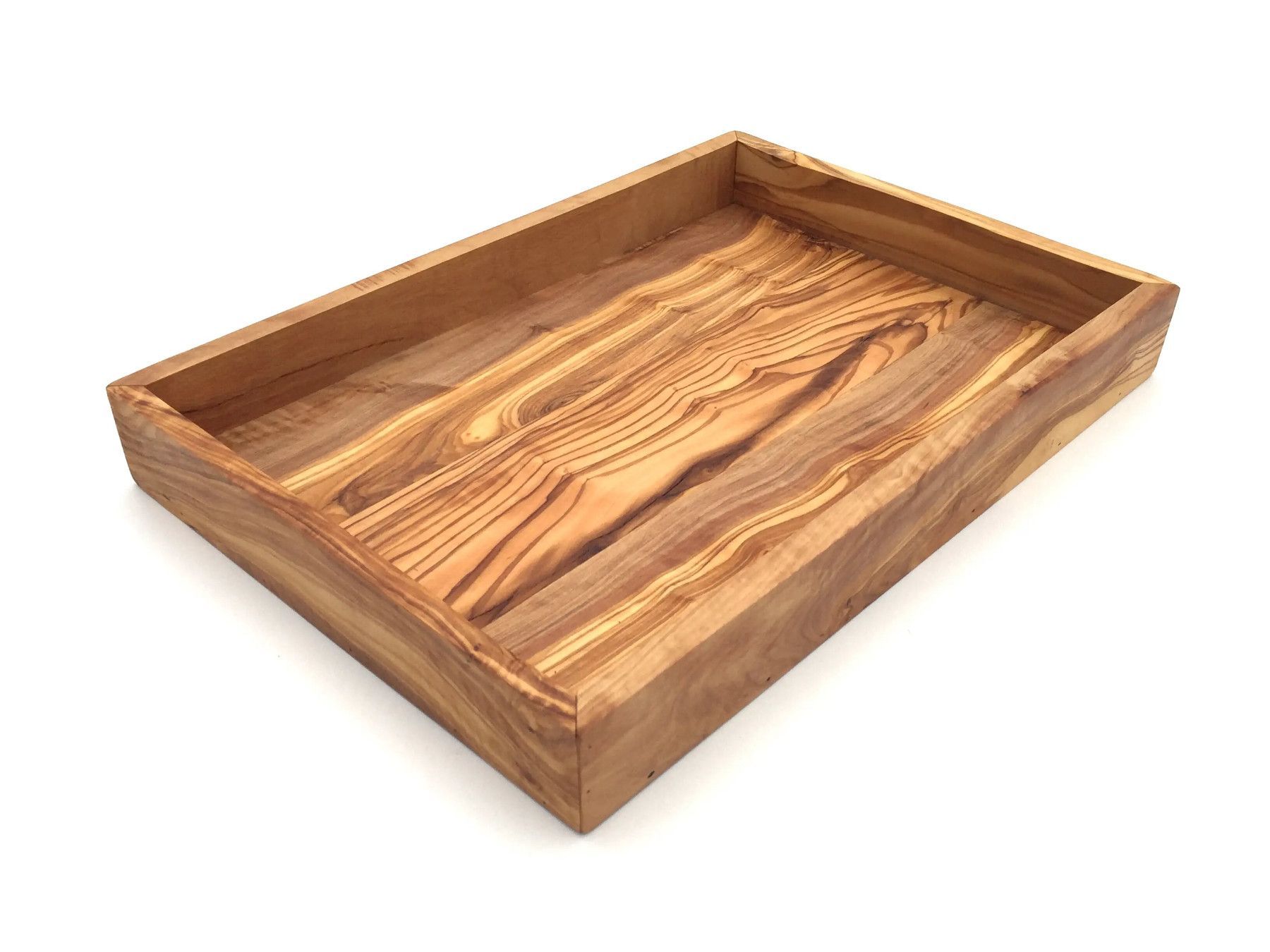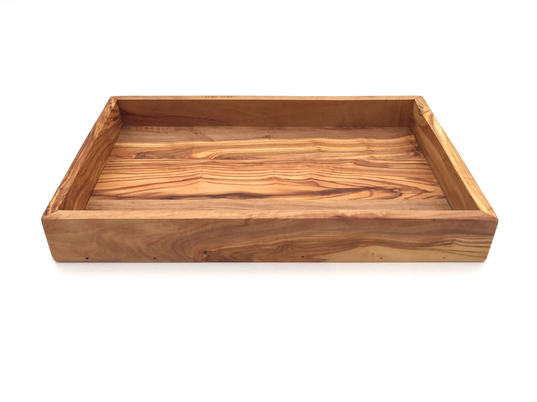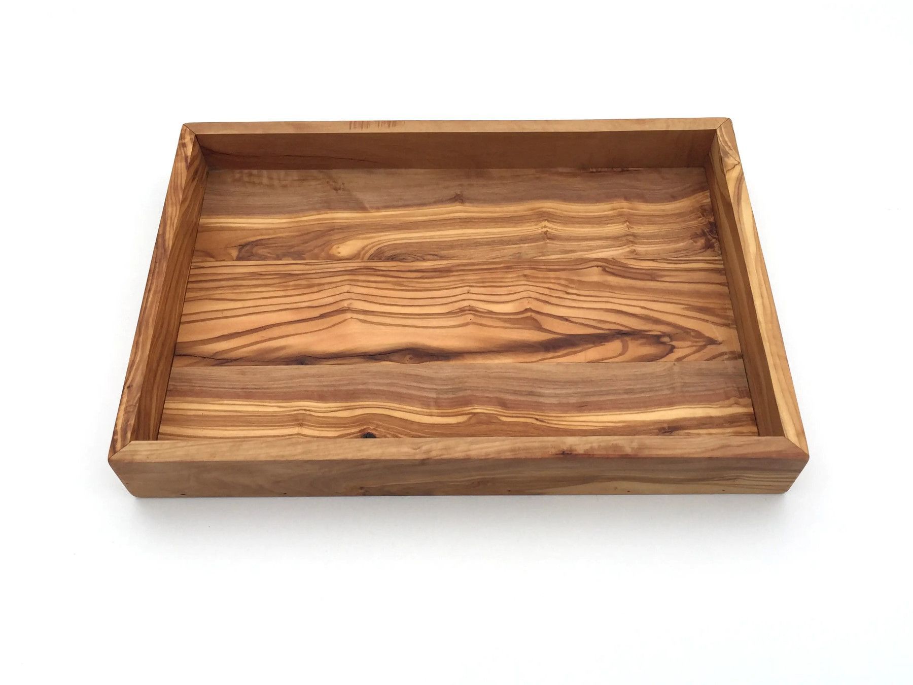Tablett rechteckig L. 32 cm Holz Serviertablett Ablage Platte Olivenholz Handarbeit
