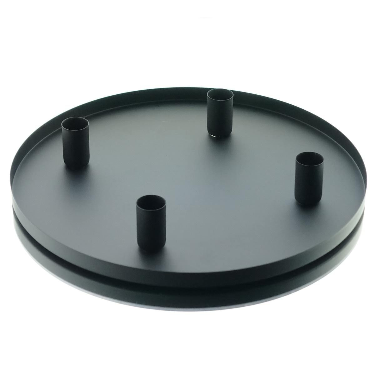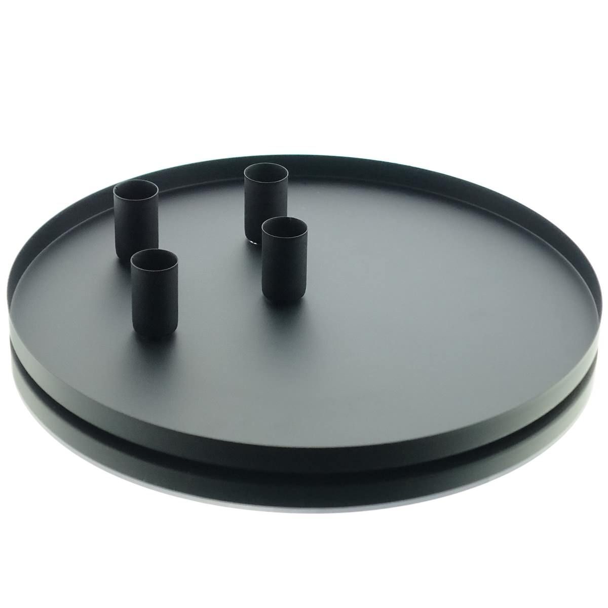 Kaemingk Tablett Schwarz mit 4 Magnet-Stabkerzenhaltern Ø 30 cm - Metall