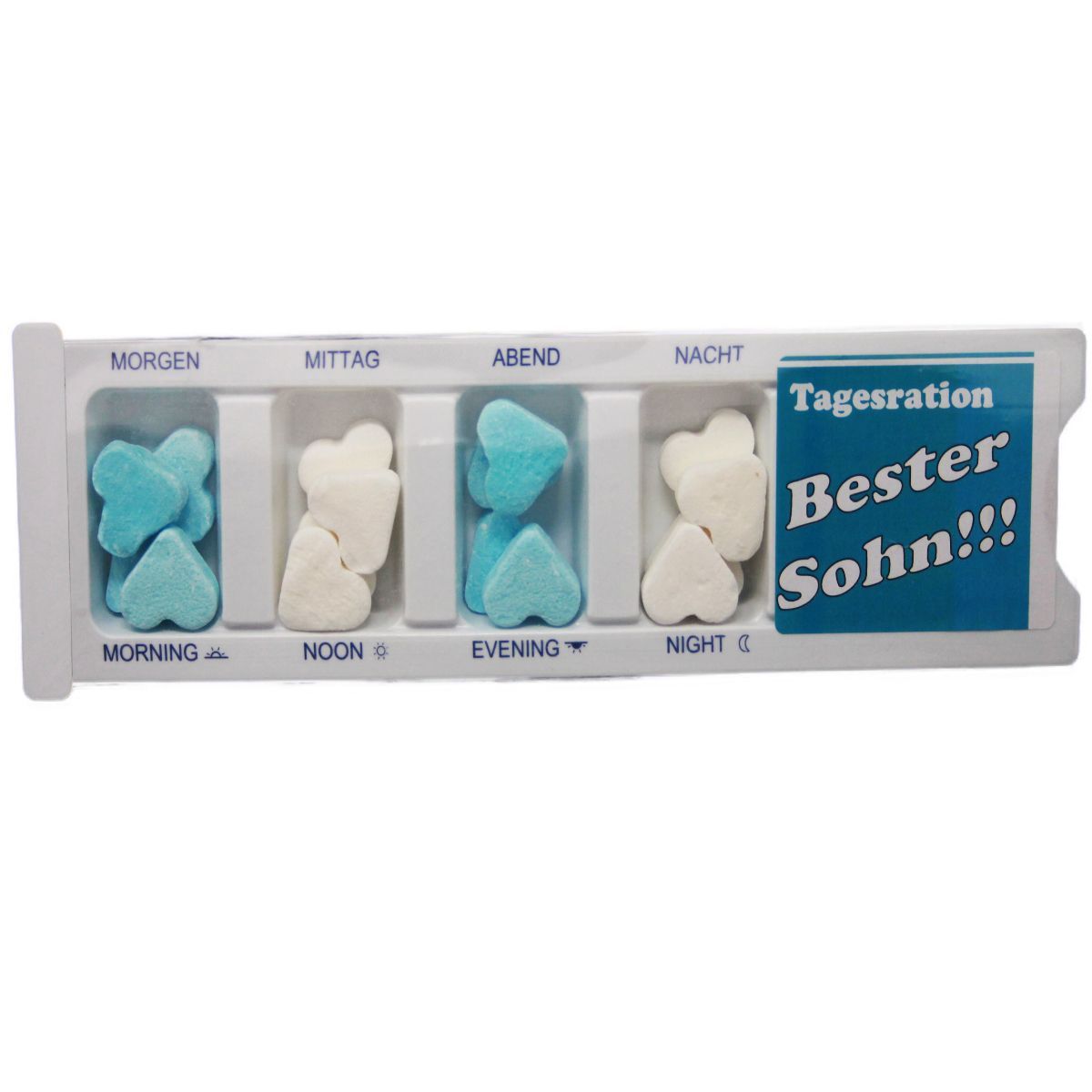Tablettenbox Bester Sohn gefüllt mit Traubenzucker Herzen Scherzartikel 25g