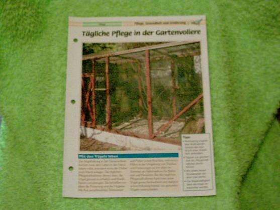 Tägliche Pflege in der Gartenvoliere - Infokarte über
