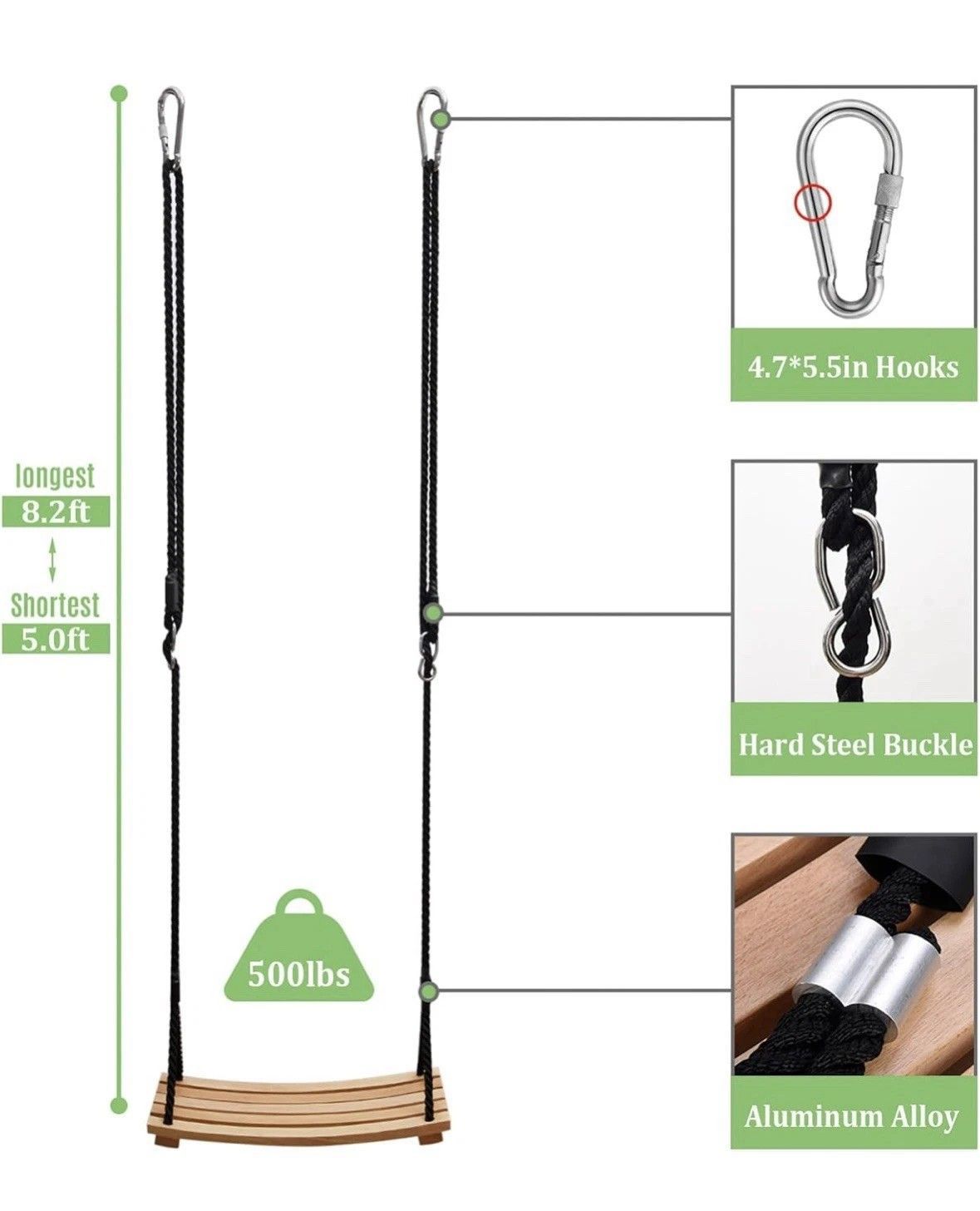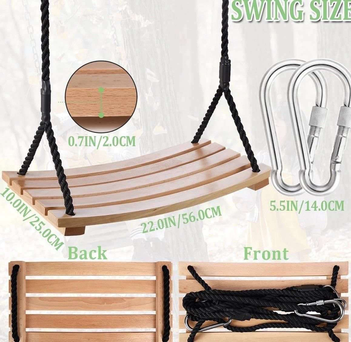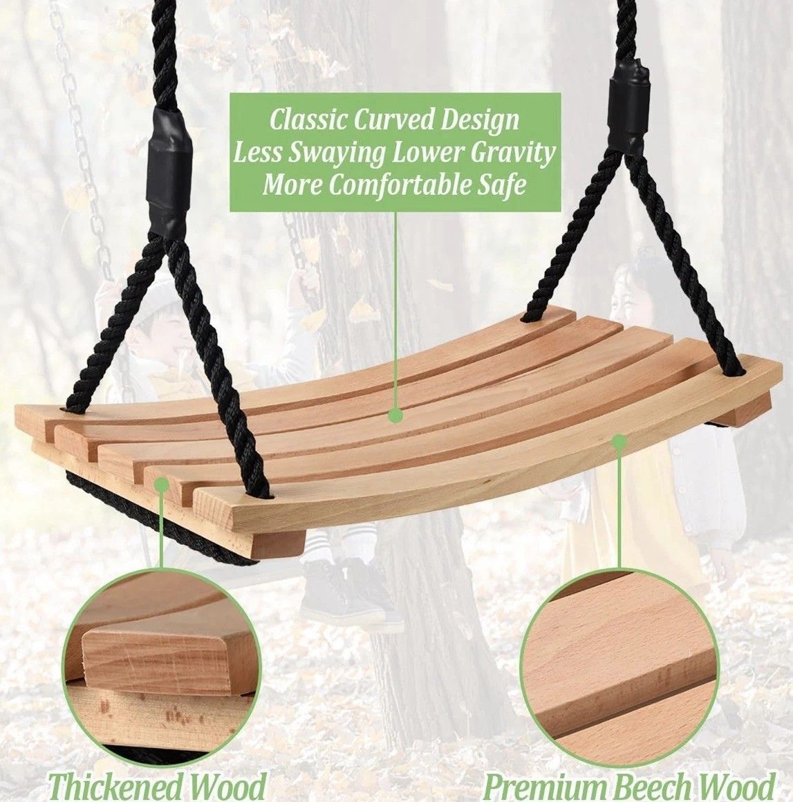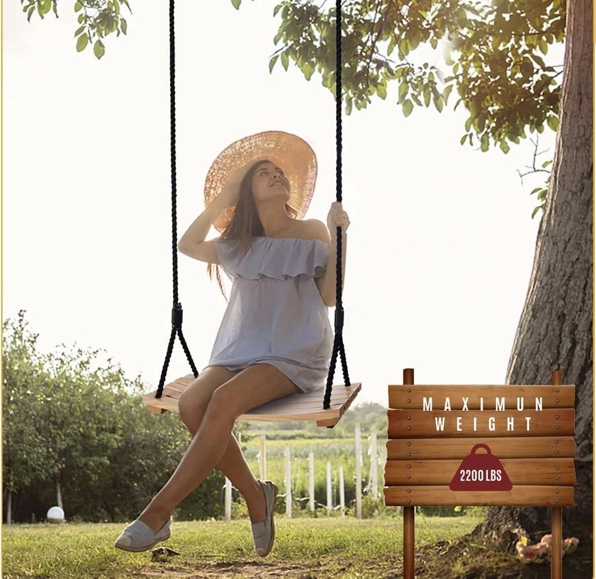 Taeku Schaukel Holz, Erwachsene Brettschaukel Spielplatz Garten Schaukel Kinderschaukel mit Höhenverstellbar Seil für Innen Außenbereich (56 * 25cm) Material Schwingen - Hergestellt aus Superior Performance Wood, saubere Textur, einheitliches Holz, starke Härte, stabile Leistung. Unter Verwendung ei
