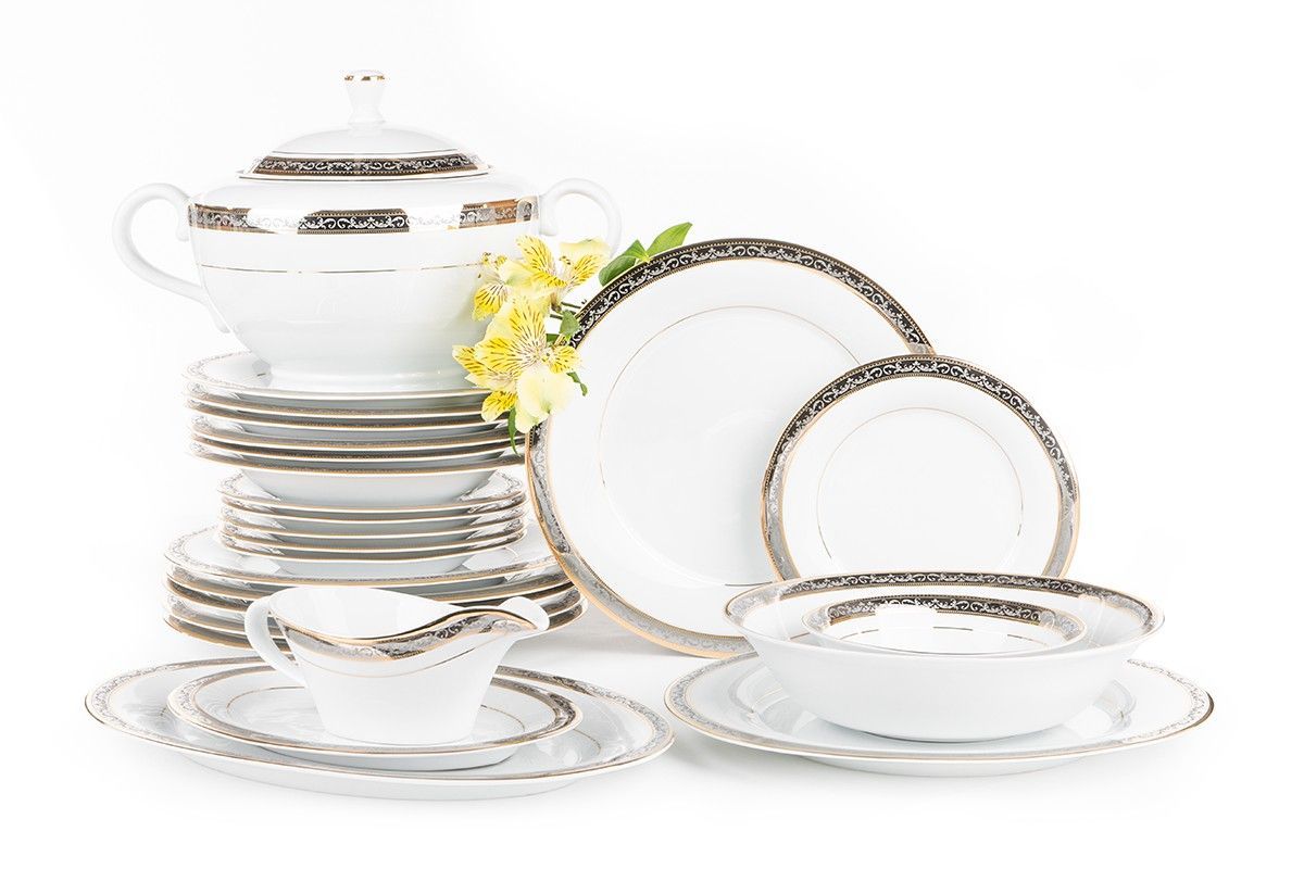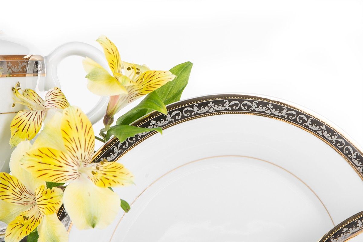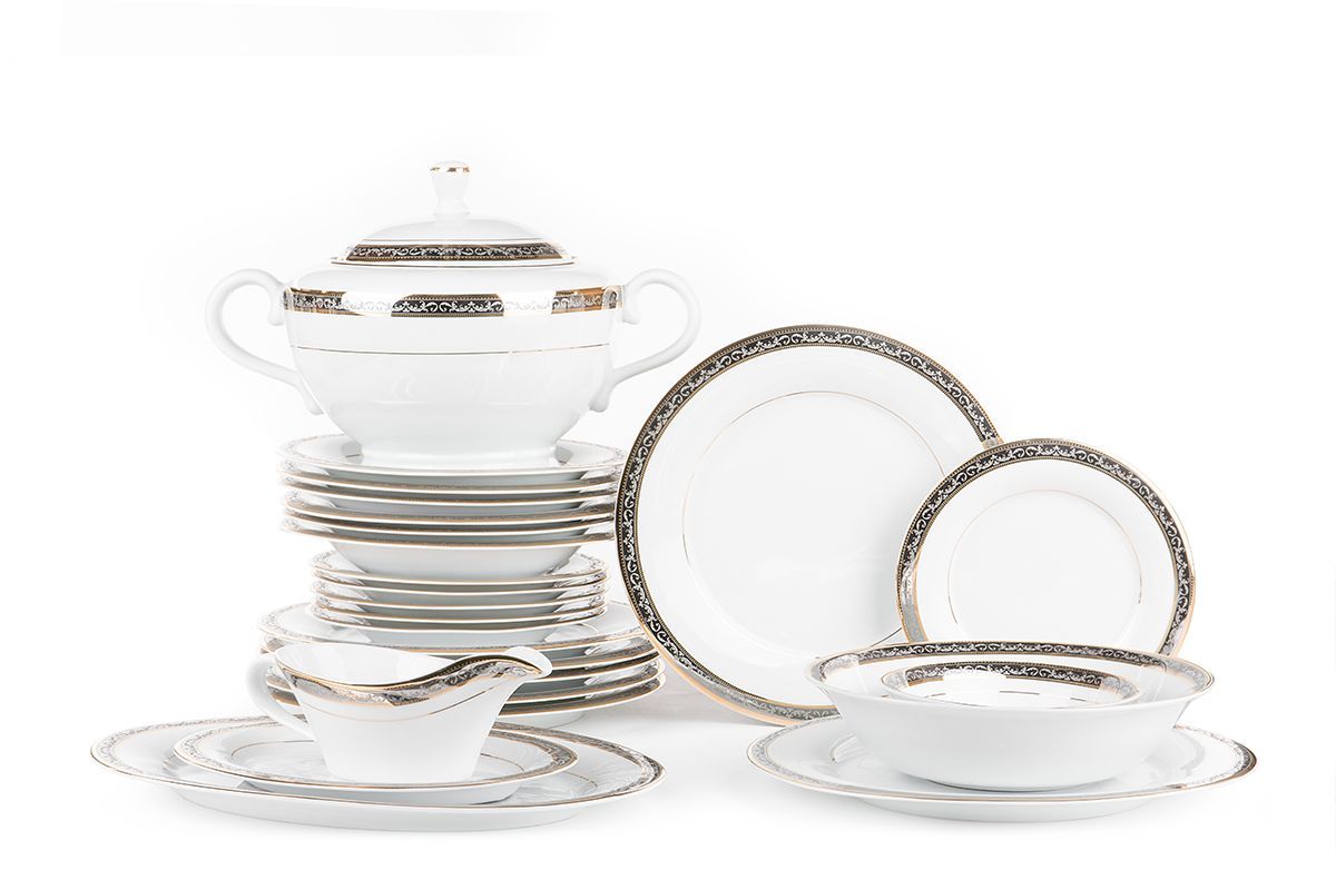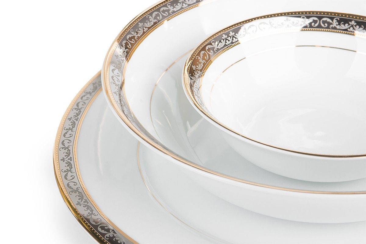 Tafelservice & Dessertteller 6 Personen (25 Stück) weiß / silber / gold Conte Konsimo