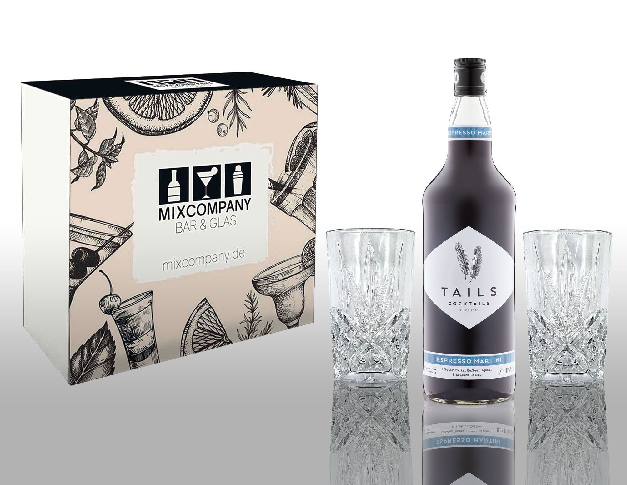 Tails Cocktails Geschenkset Espresso Martini 1L (14,9% Vol) mit 2 Longdrink Coc