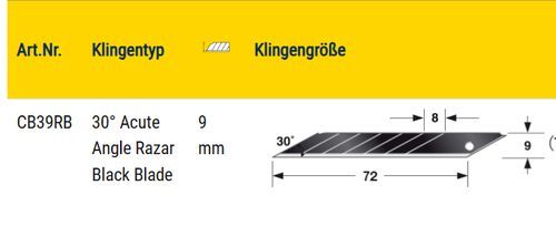 Tajima - Cutterklingen - 9mm - 30° Acute Angle Razar Black Blade - CB39RB Box