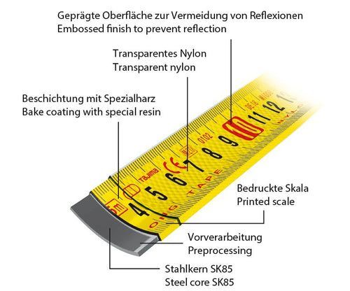 Tajima - Taschenmaßband W-THICK Lock Stainless - Bandbreite: 25mm - Bandlänge 5m