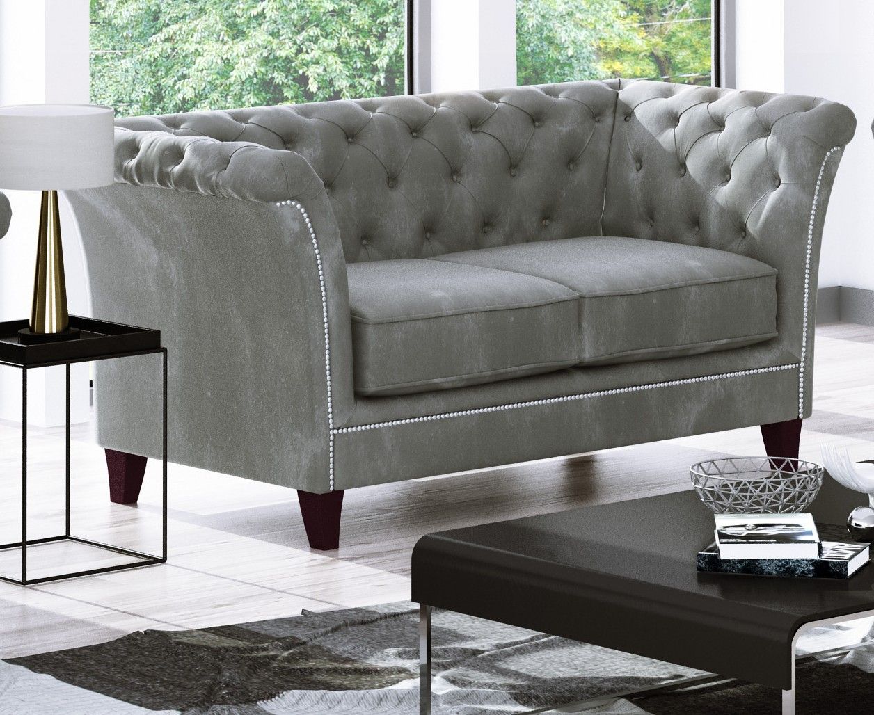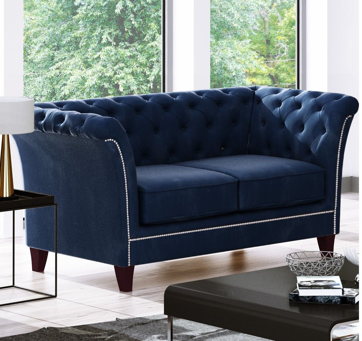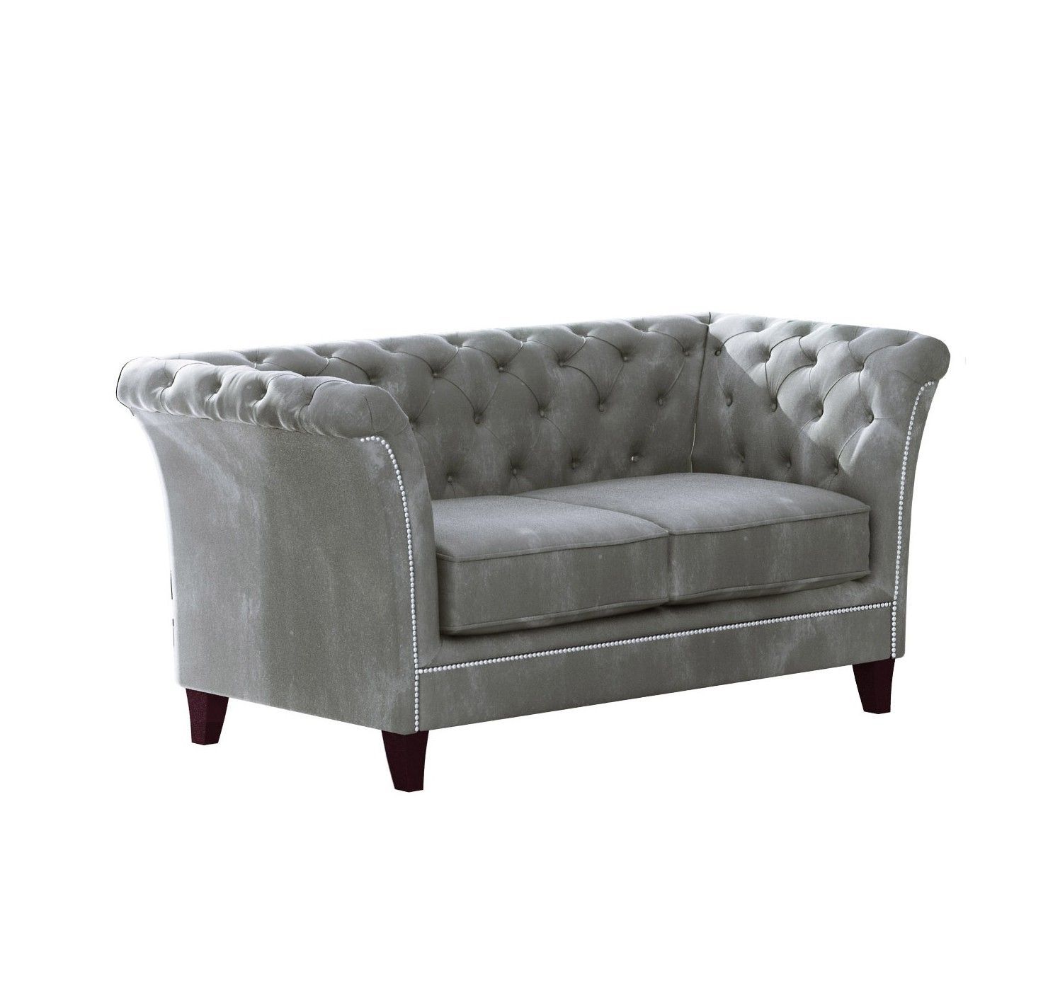 Talia - Chesterfield Sofa 2-Sitzer aus Samt-Stoff mit Holzfüßen