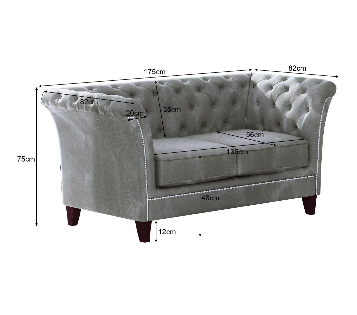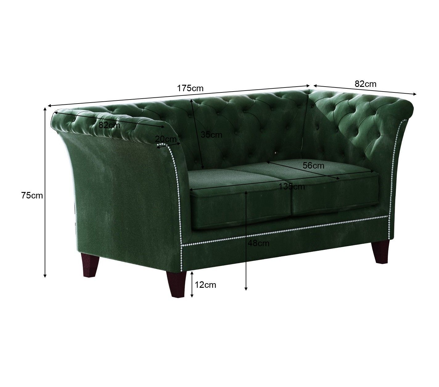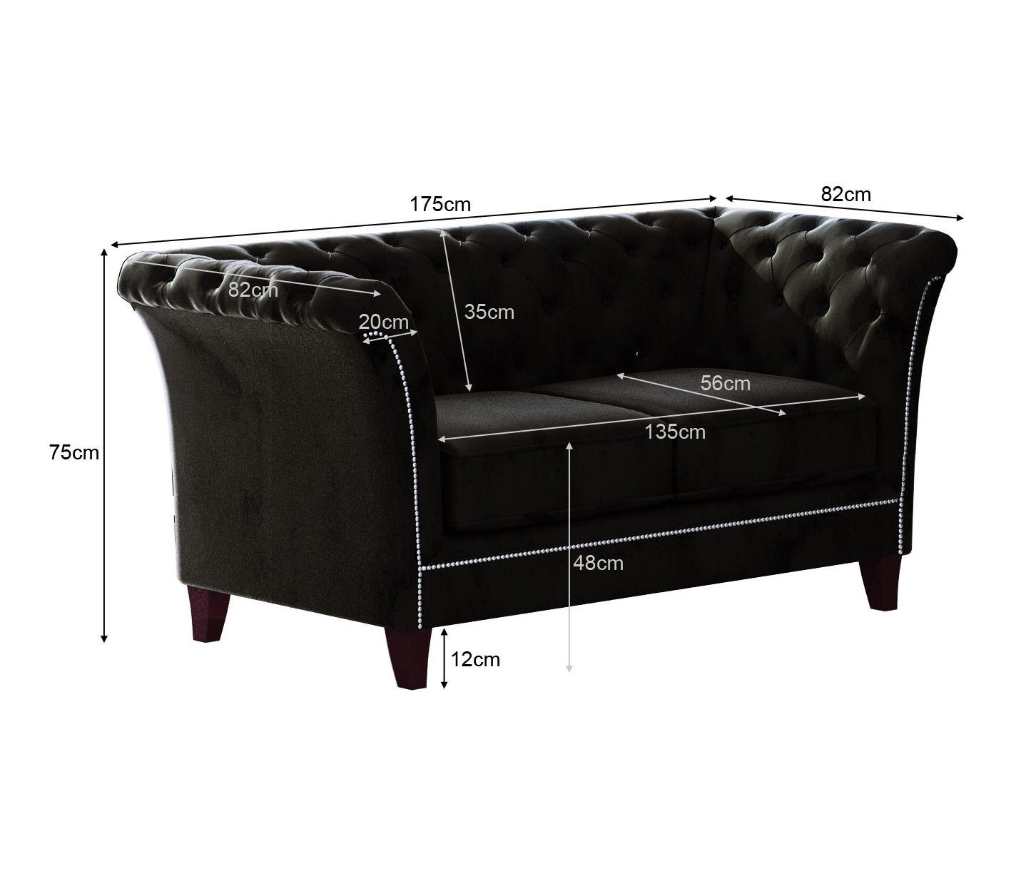 B 175 cm x T 82 cm x H 75 cm