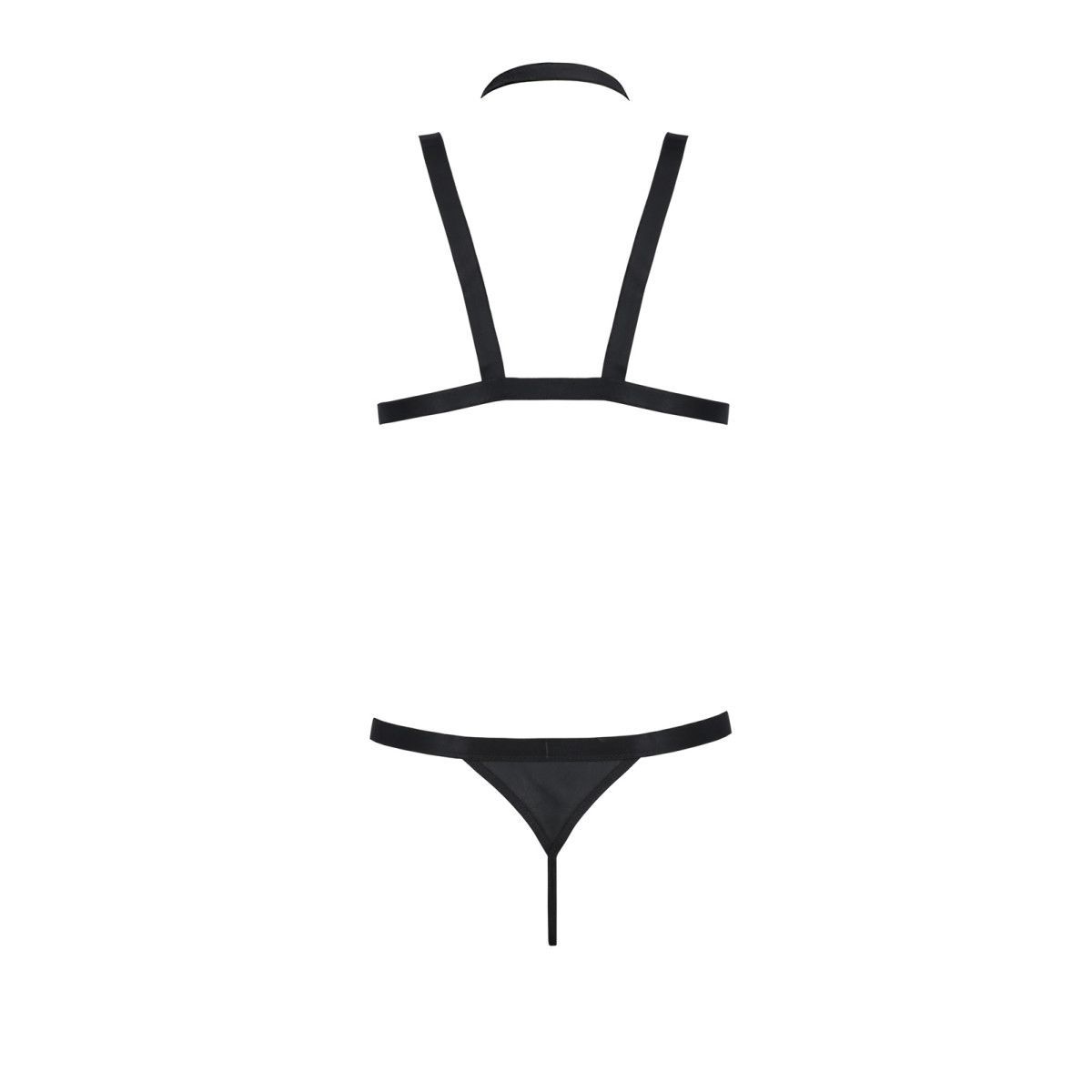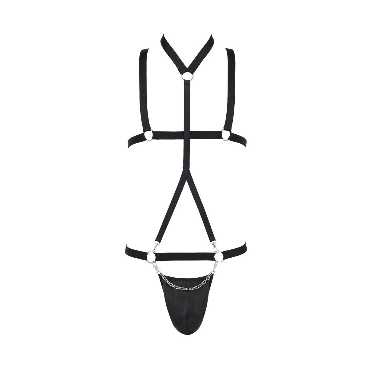 Tanga lederartig mit Choker und Harness Metallringe Kette Andrew schwarz