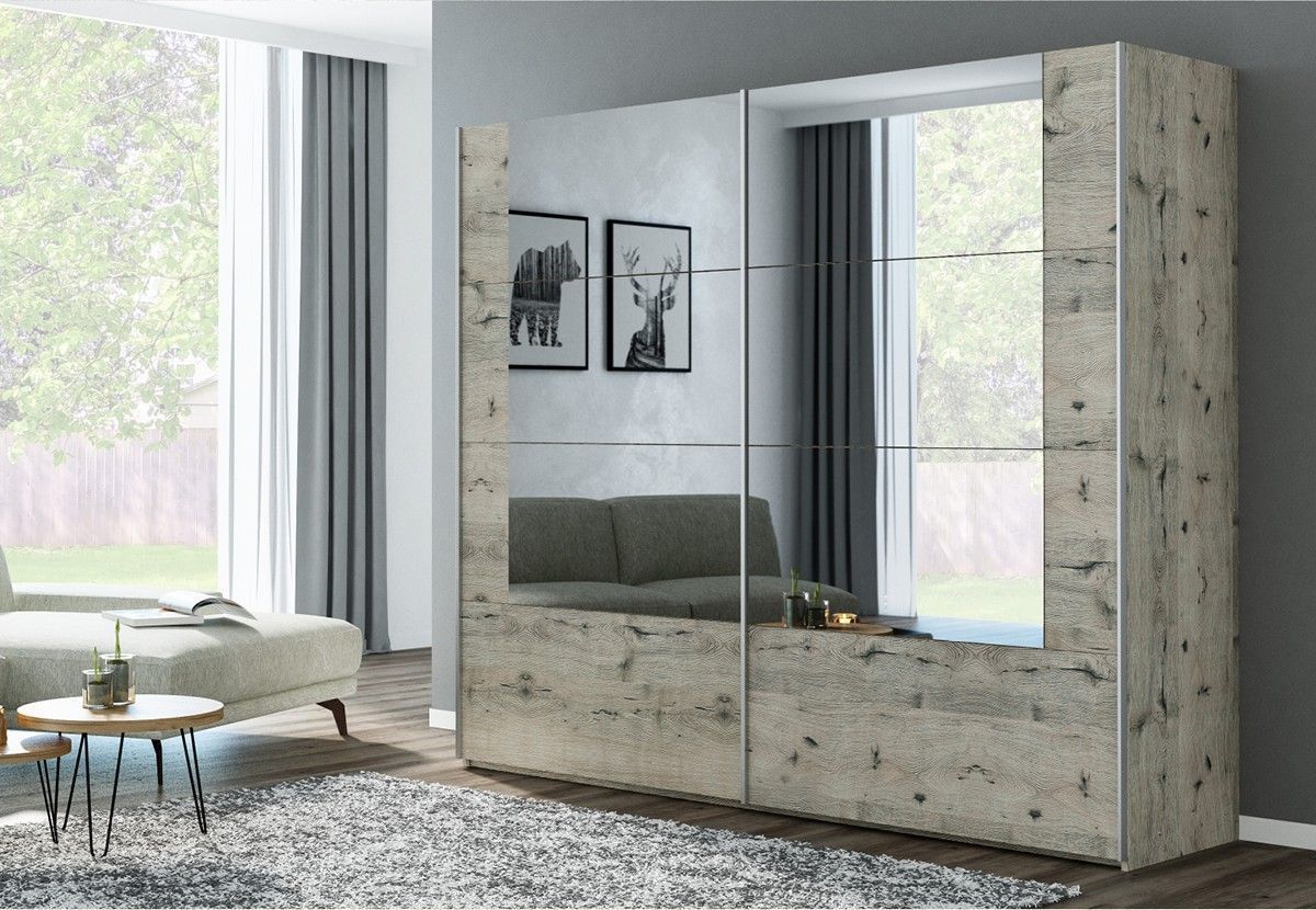017666076782 Schrank - Tanja SPEZIFIKATION Ma ße: Breite 250 Tiefe 65 Höhe 215 cm Farb e: Wilington Eiche + Spiegle Produktbeschreibung Er hat ein modernes Türöffnungssystem. Innen mit Kleiderbügel und Regalen. Hervorragend hergestellt mit moderner Technologie. Verpackt in ein