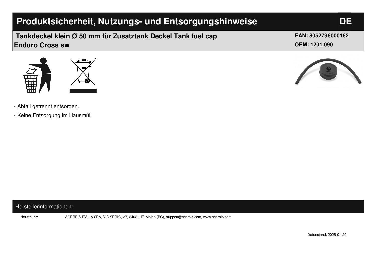 Acerbis Tankdeckel klein Ø 50 mm für Zusatztank Deckel Tank fuel cap Enduro Cross sw